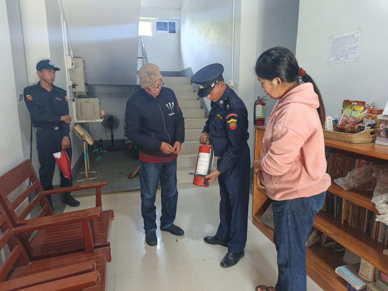 စစ်ကိုင်းတိုင်းဒေသကြီး ရွှေဘိုခရိုင် ရွေဘိုမြို့နယ်အတွင်းရှိ တည်းခိုခန်းများမှတစ်ဆင့် မီးလောင်မူနှင့် မီးလန့်မူများမဖြစ်ပေါ်စေရေးအတွက် ဇန်နဝါရီလ (၇)ရက်နေ့ နံနက်(၁၀)နာရီတွင် ရွှေဘိုခရိုင်မီးသတ်ဦးစီးမှူး လက်ထောက်ညွှန်ကြားရေးမှူးဦးအေးမြင့်နှင့် မြို့နယ်မီးသတ်ဦးစီးမှူး ဦးအောင်မြတ်တိုးတို့ ဦးဆောင်သော ခရိုင်/မြို့နယ် မီးသတ်တပ်ဖွဲ့ဝင်များသည် အရန်မီးသတ်တပ်ဖွဲ့ဝင်များနှင့်ပူးပေါင်း၍ ရွှေဘိုမြို့နယ်အတွင်းရှိ တည်းခိုခန်း (၁၆)ခုသို့သွားရောက်၍ မီးဘေးကြိုတင်ကာကွယ်ရေးပစ္စည်းများ ထားရှိမူအား စစ်ဆေးပြီး တည်းခိုခြင်းမရှိသည့် အခန်းများမိန်းချထားရန် တည်းခိုခန်းများတွင် ရေနွေးဂေါက်အိုးများမထားရန် မီးလောင်မူမီးလန့်မူဖြစ်က လက်ဦးမူရယူငြှိမ်းသတ်၍ အချိန်နှင့်တစ်ပြေးညီ မီးသတ်စခန်းသို့ အကြောင်းကြားရန် အကြံပြုခဲ့ပြီး မီးသတ်ဆေးဘူးအသုံးပြုပုံများအား ရှင်းလင်းပြသခဲ့ကြောင်းသိရသည်။
