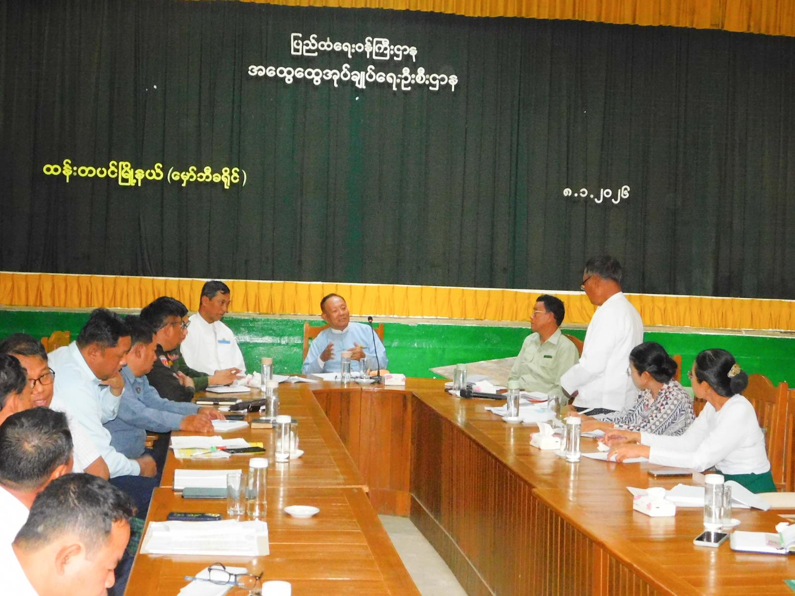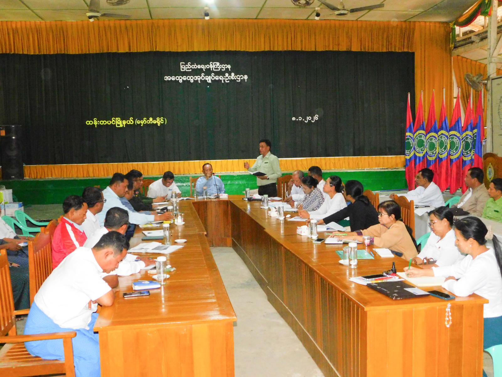 ထို့နောက် တက်ရောက်လာကြသည့် မြို့နယ်စီမံခန့်ခွဲရေးနှင့် အုပ်ချုပ်ရေးကော်မတီဥက္ကဋ္ဌ ဦးနိုင်နိုင်ဦးနှင့် မြို့နယ်စီမံခန့်ခွဲရေးနှင့် အုပ်ချုပ်ရေးကော်မတီအဖွဲ့ဝင်များ၊ မြို့နယ်ရွေးကောက်ပွဲကော်မရှင်အဖွဲ့ခွဲဥက္ကဋ္ဌနှင့် အဖွဲ့ဝင်များ၊ မြို့နယ်အဆင့်ဌာနဆိုင်ရာ တာဝန်ရှိသူများက ပါတီစုံဒီမိုကရေစီအထွေထွေရွေးကောက်ပွဲ အပိုင်း (၂) အတွက် ကြိုတင်ပြင်ဆင်ဆောင်ရွက်ထားရှိမှု အခြေအနေများနှင့် ဆက်လက်ဆောင်ရွက်သွားမည့် လုပ်ငန်းစဥ်များကို ရှင်းလင်းတင်ပြခဲ့ကြသည်။