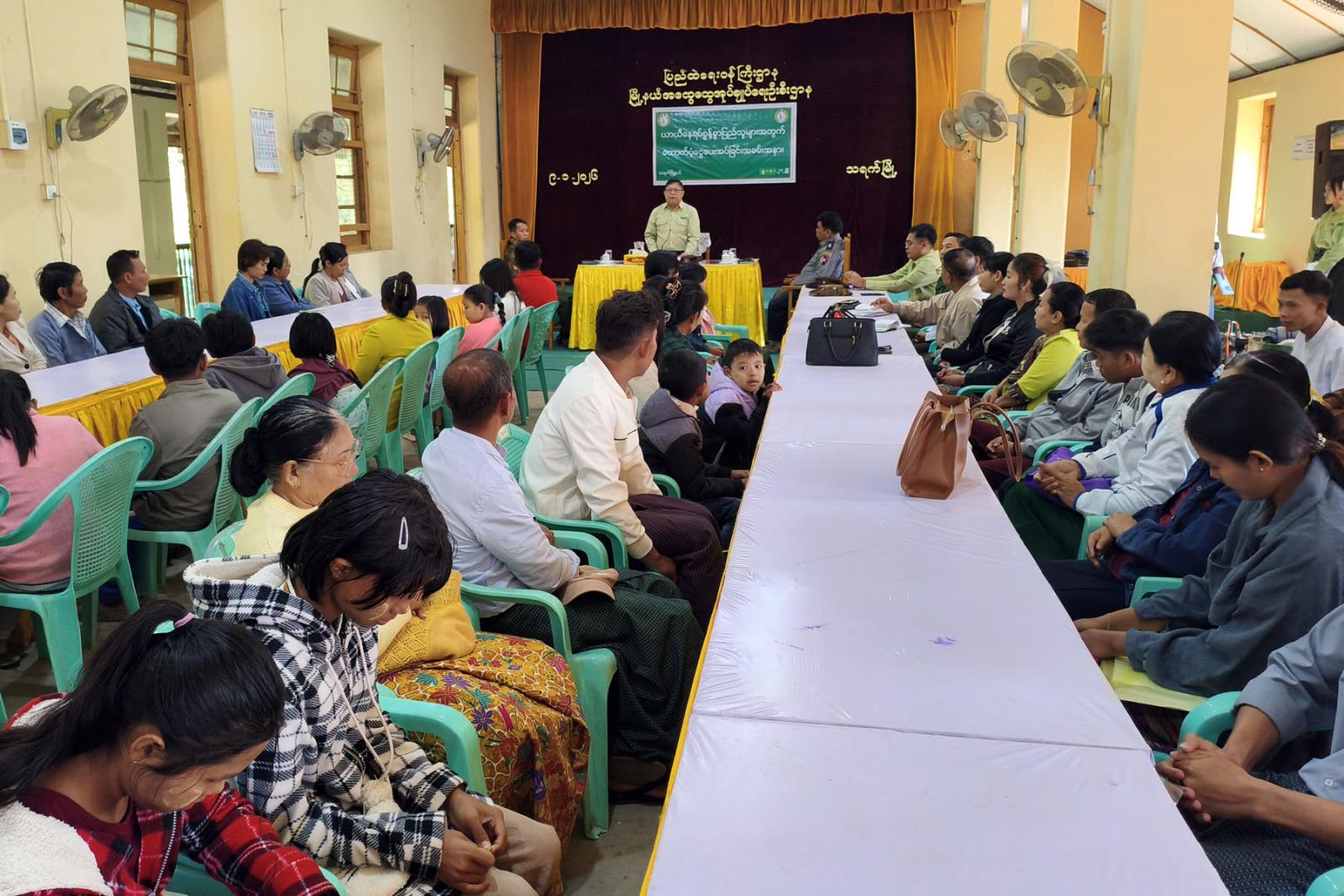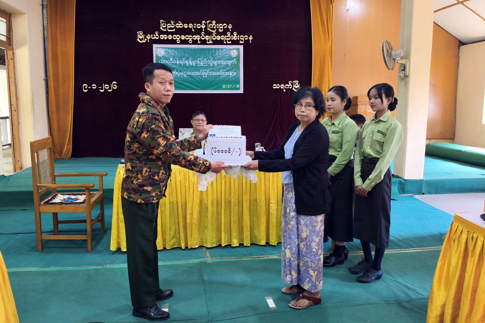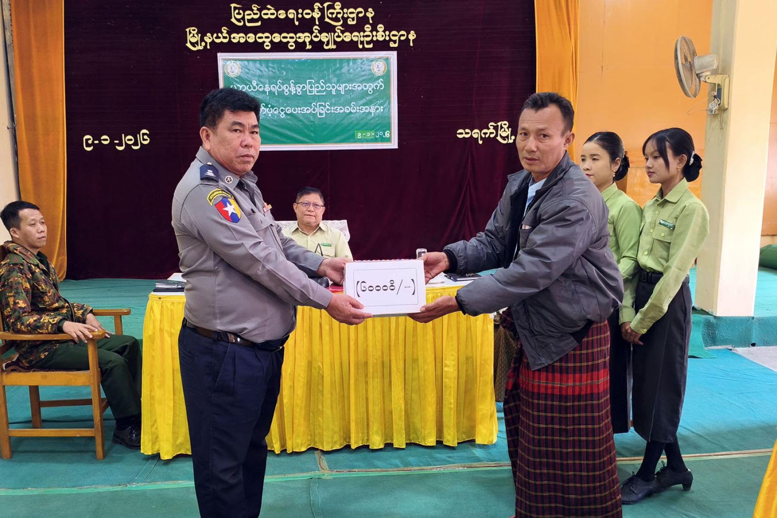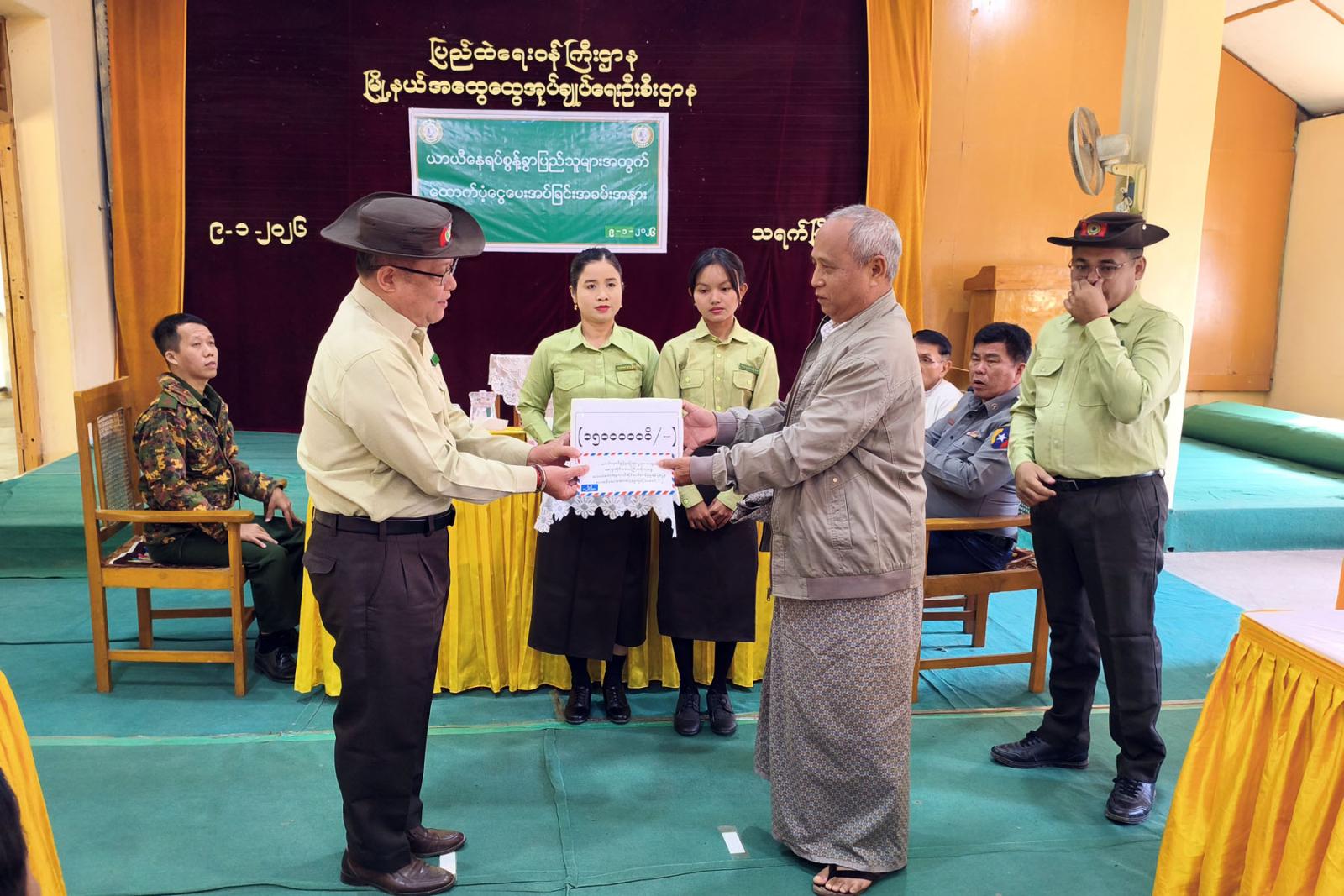 ထို့နောက် ယာယီနေရပ်စွန့်ခွာပြည်သူများအား ခရိုင်စီမံခန့်ခွဲရေးနှင့်အုပ်ချုပ်ရေးကော်မတီဥက္ကဋ္ဌ ဦးမြတ်ထွန်းဦးနှင့် အတွင်းရေးမှူး၊ အဖွဲ့ဝင်တို့က ယာယီနေရပ်စွန့်ခွာပြည်သူများအား ထောက်ပံ့ပေးခဲ့ကြောင်း သိရသည်။