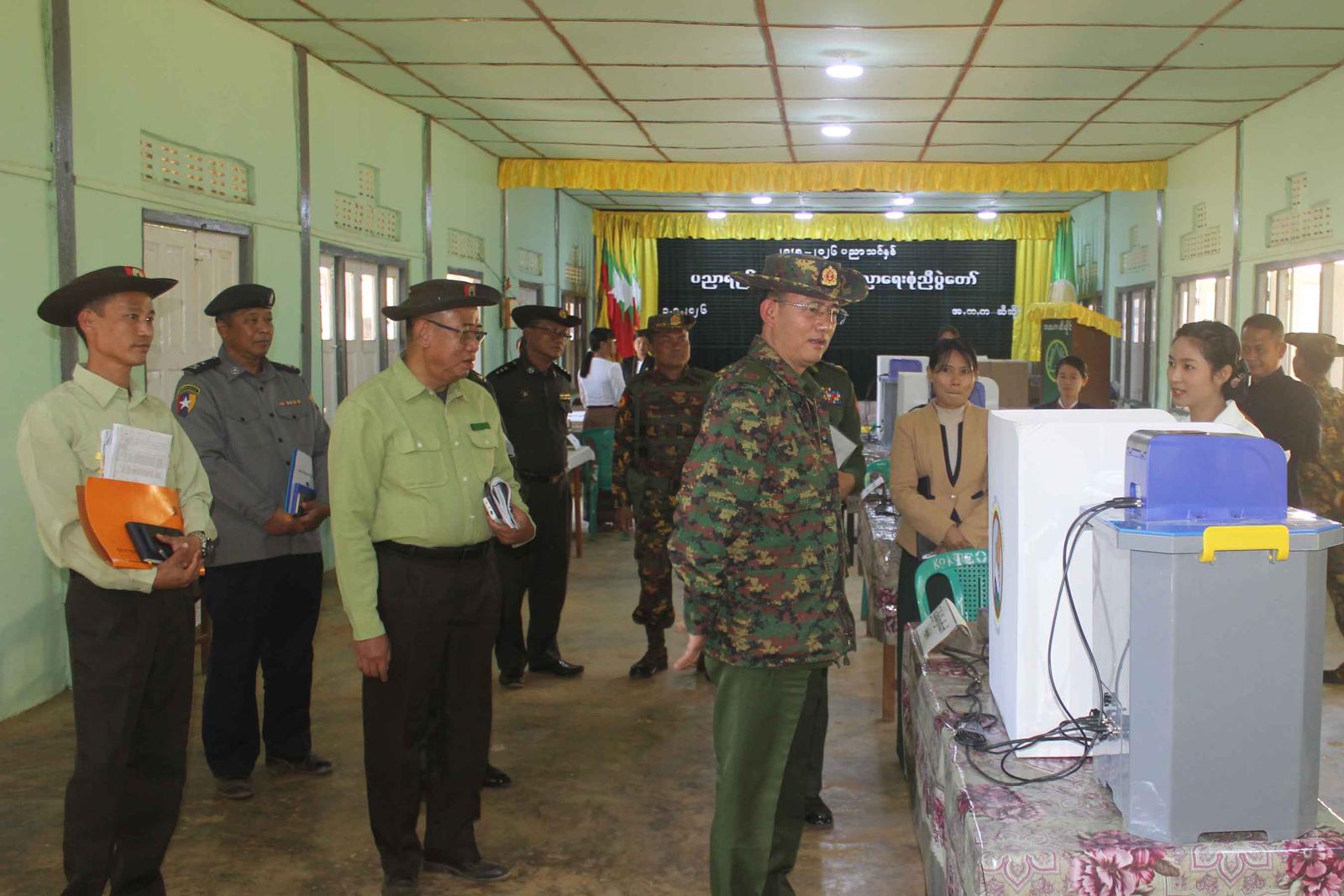 ဆက်လက်၍ အရှေ့ပိုင်းတိုင်းစစ်ဌာနချုပ်တိုင်းမှူး ဗိုလ်မှူးချုပ် ကျော်နိုင်ဦးနှင့် တာဝန်ရှိသူတို့သည် ဆီဆိုင်မြို့အခြေခံပညာအထက်တန်းကျောင်းရှိ မဲရုံနှင့် ဘန်းယဉ်ကျေးရွာ အခြေခံပညာအထက်တန်းကျောင်းရှိ မဲရုံသို့သွားရောက်ပြီး မဲရုံများပြင်ဆင်ထားရှိမှု၊ မဲပေးစက်ထိန်းသိမ်းထားရှိမှုနှင့် ဆန္ဒမဲပေးရာတွင် အဆင်ပြေစွာမဲပေးနိုင်ရေး မဲပေးခြင်းလုပ်ငန်း ဆောင်ရွက်ထားရှိမှုအခြေအနေများကို လိုက်လံကြည့်ရှုစစ်ဆေးပြီး လိုအပ်သည်များကို တာဝန်ရှိသူများနှင့် ပေါင်းစပ်ညှိနှိုင်းဆောင်ရွက်ပေးခဲ့ကြောင်း သိရသည်။