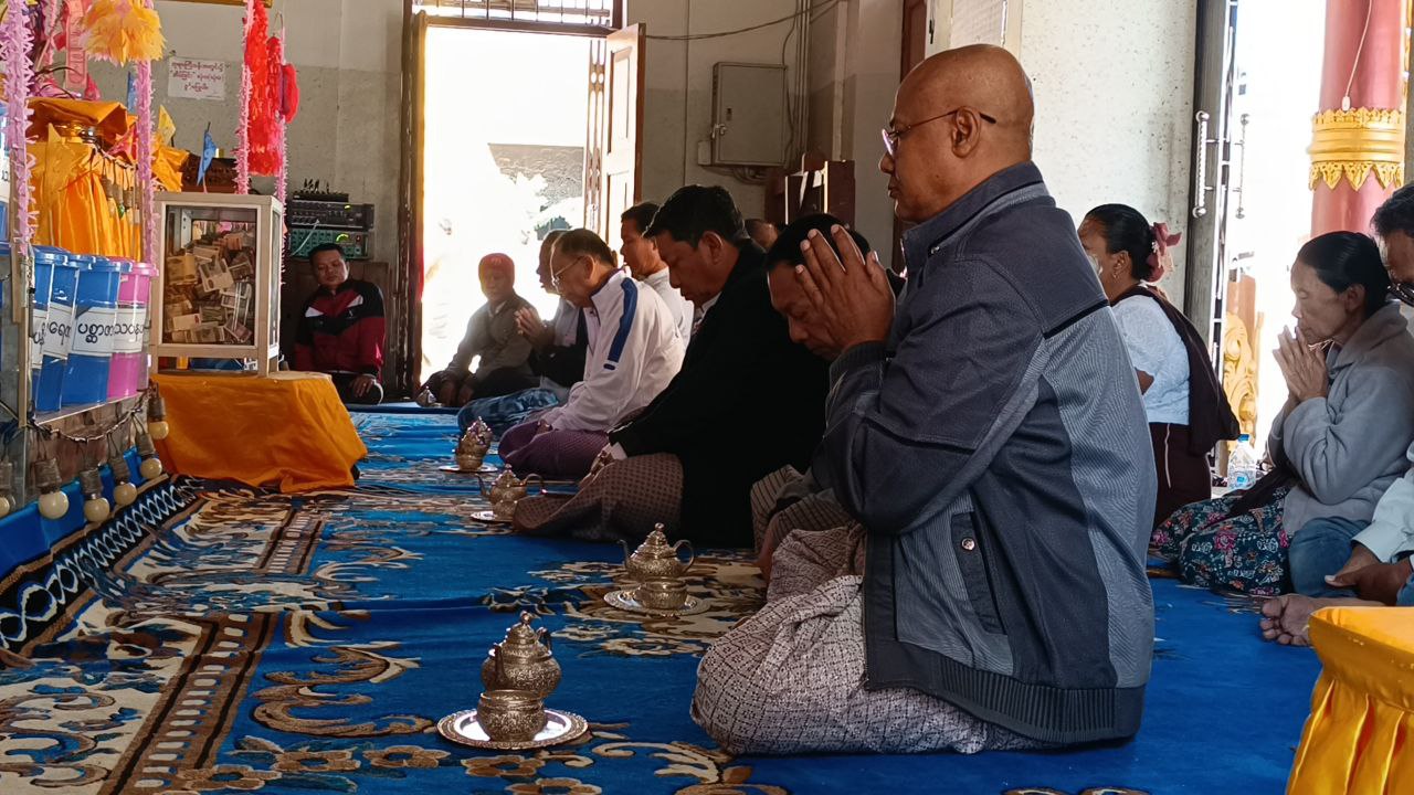 ဆက်လက်ပြီး အခမ်းအနားသို့ တက်ရောက်လာကြသည့် ခရိုင်စီမံခန့်ခွဲရေးနှင့်အုပ်ချုပ်ရေးကော်မတီအဖွဲ့ဝင် (၂) ဦးစိန်သောင်းနှင့် ဌာနဆိုင်ရာတာဝန်ရှိသူများနှင့် စေတနာရှင်၊ အလှူရှင်ပရိတ်များက နိုင်ငံတော်ဗဟိုသံဃာ့ဝန်ဆောင်၊ မြသုခတပ်ဦးကျောင်း၊ ဒေါက်တာအရှင်ပညာနန္ဒထံမှ ငါးပါးသီလခံယူဆောက်တည်ပြီး ပရိတ်တော်များ နာယူကြည်ညိုခဲ့ကြသည်။