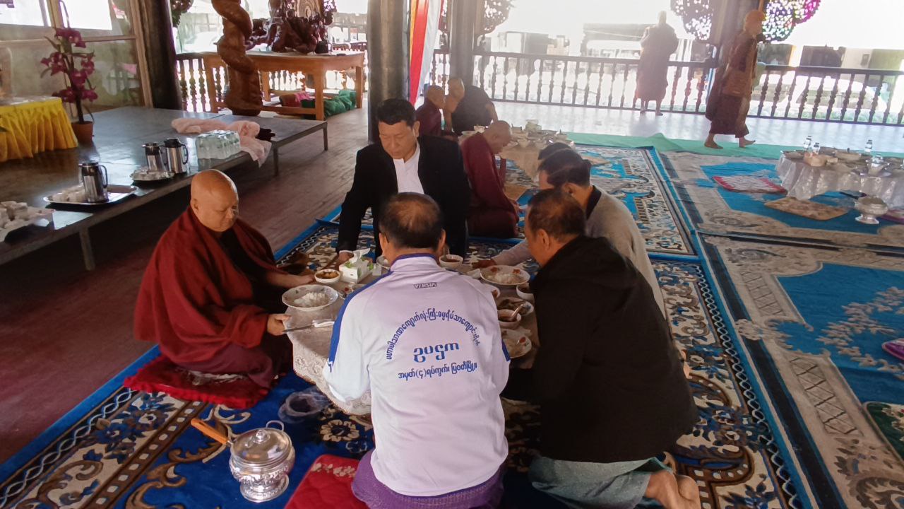 ထို့နောက် တက်ရောက်လာကြသည့် တာဝန်ရှိသူများနှင့် မတည်အလှူရှင် ဧည့်သည်တော်များက လှူဖွယ်ဝတ္တုပစ္စည်းများကို ဆပ်ကပ်လှူဒါန်းခဲ့ကြပြီး နိုင်ငံတော်ဗဟိုသံဃာ့ဝန်ဆောင် မြသုခတပ်ဦးကျောင်းဆရာတော်ဒေါက်တာ အရှင်ပညာနန္ဒထံမှ အနုမောဒနာတရား နာကြား၍လှူဒါန်းမှု အစုစုတို့ကို ရေစက်သွန်းချအမျှပေးဝေပြီး ဗုဒ္ဓသာသနံစိရံတိဌတု (၃) ကြိမ် ရွတ်ဆိုကာ အခမ်းအနားကို ရုပ်သိမ်းခဲ့ကြောင်း သိရသည်။