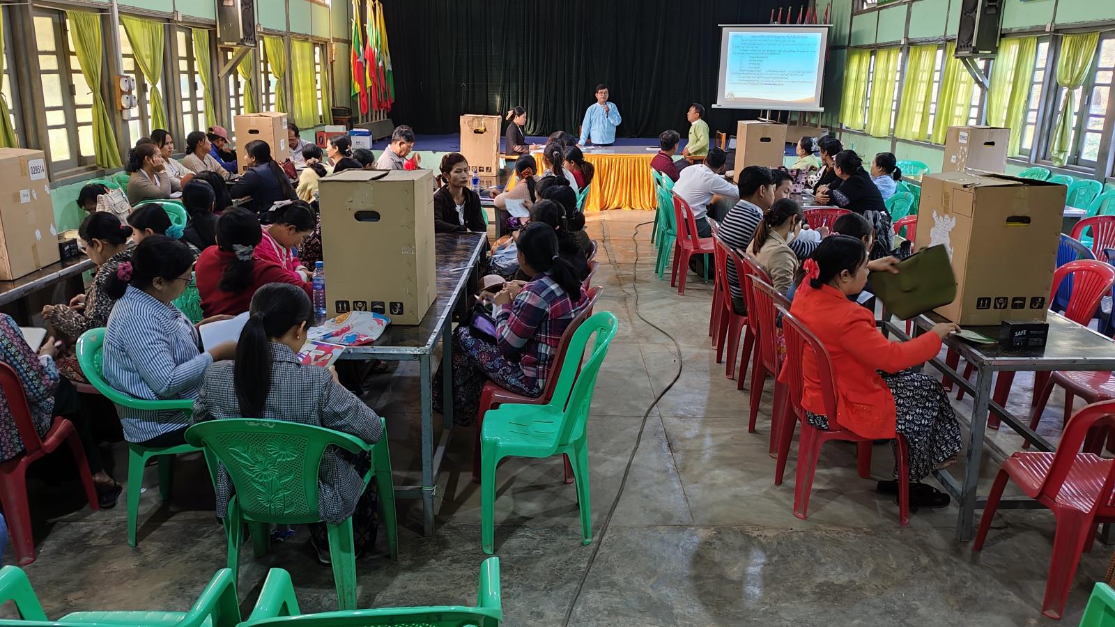 အဆိုပါ မဲရုံမှူး၊ ဒုမဲရုံမှူးများနှင့် MEVM မဲပေးစက်ကိုင်ဝန်ထမ်းများ မွမ်းမံသင်တန်းကို ဇန်နဝါရီလ ၉ ရက်နေ့မှ ၁၂ ရက်နေ့အထိ ဖွင့်လှစ်ဆောင်ရွက်ပေးသွားမည်ဖြစ်ရာ ရပ်ကွက်/ကျေးရွာ အုပ်ချုပ်ရေးမှူးများ သက်ဆိုင်ရာမဲရုံဝန်ထမ်းများတက်ရောက်ခဲ့ကြကြောင်း သိရသည်။