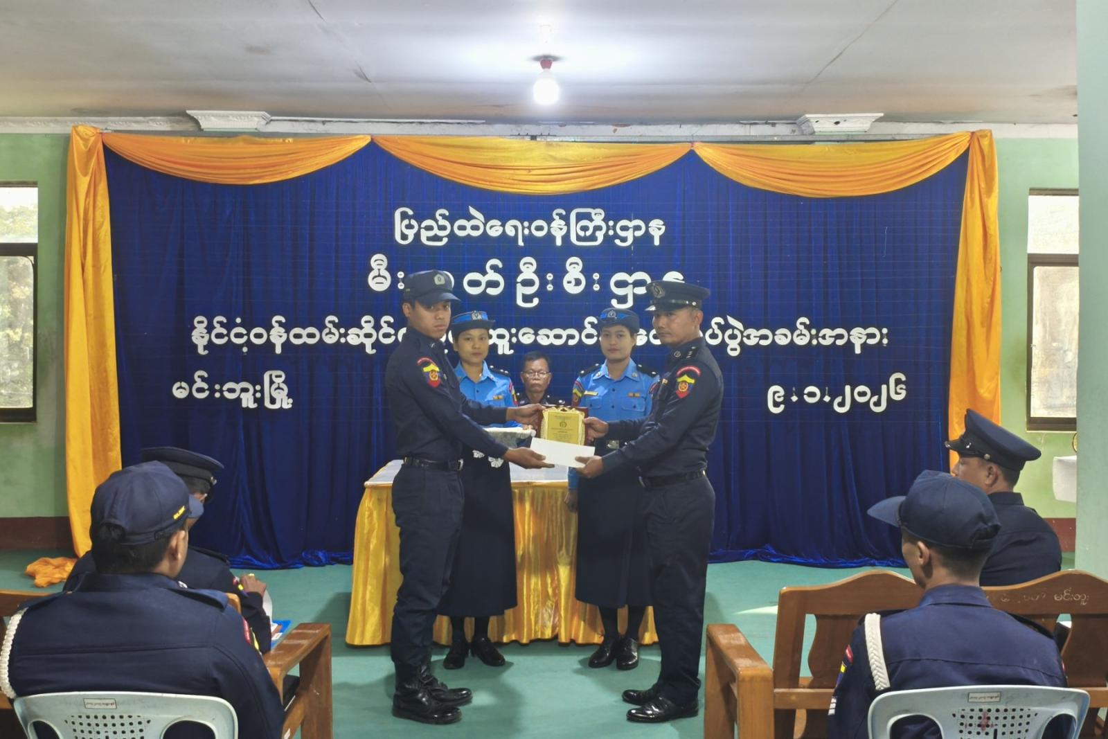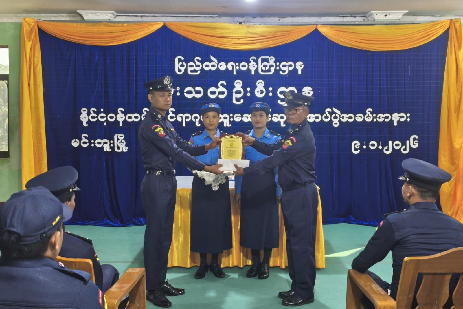 မကွေးတိုင်းဒေသကြီး၊ မင်းဘူးခရိုင်မီးသတ်ဦးစီးဌာနက မန္တလေးအင်အားပြင်းငလျင်ဖြစ်စဉ်၌ ရှာဖွေကယ်ဆယ်ရေးလုပ်ငန်းများကို စွမ်းစွမ်းတမံကြိုးပမ်းဆောင်ရွက်ခဲ့သော တပ်ဖွဲ့ဝင်များအတွက် နိုင်ငံ့ဝန်ထမ်းဆိုင်ရာဂုဏ်ထူးဆောင်ဆု ပေးအပ်ပွဲအခမ်းအနားကို ယနေ့နံနက်ပိုင်းက အဆိုပါရုံး၌ ကျင်းပသည်။