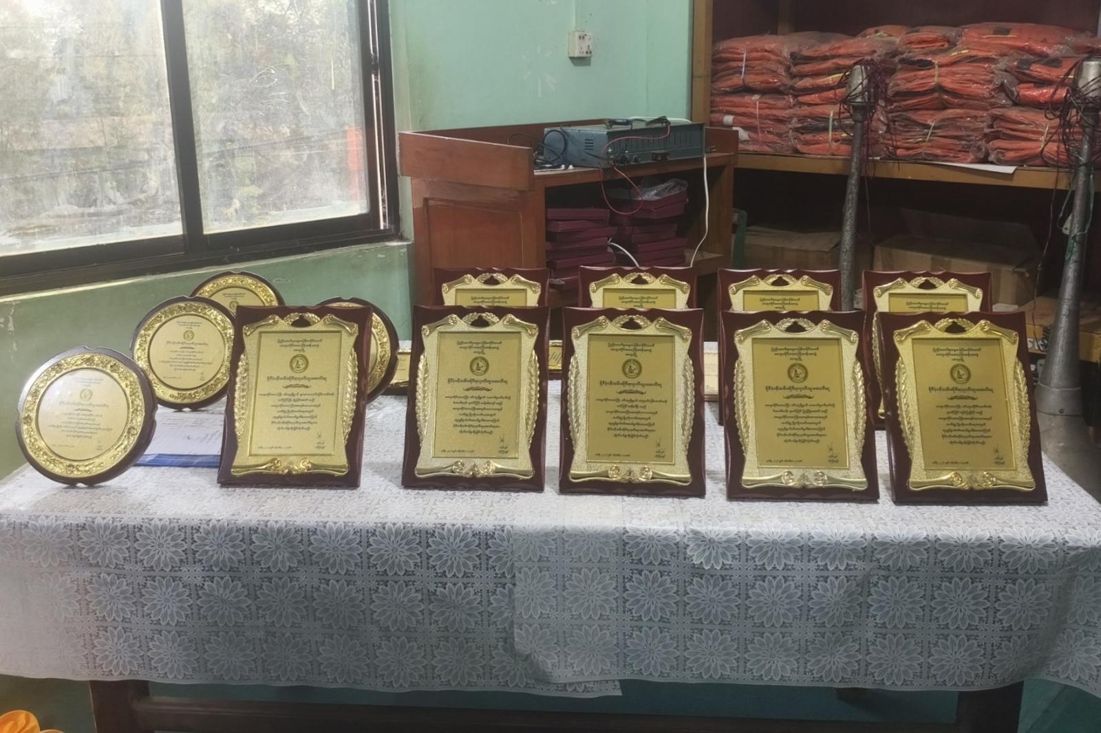 ဆက်လက်ပြီး ခရိုင်မီးသတ်ဦးစီးမှူးနှင့်တာဝန်ရှိသူများက မကွေးတိုင်းဒေသကြီးအစိုးရအဖွဲ့ကချီးမြှင့်သည့် နိုင်ငံ့ဝန်ထမ်းဆိုင်ရာဂုဏ်ထူးဆောင်ဆု ၁၅ ဆုနှင့် ဂုဏ်ပြုချီးမြှင့်ငွေများ၊ မြန်မာနိုင်ငံမီးသတ်ဦးစီးဌာနက ချီးမြှင့်သည့် အသိအမှတ်ပြု ဂုဏ်ပြုဆုလက်မှတ် ၁၉ ဆုကို ဆုရတပ်ဖွဲ့ဝင်များထံ တစ်ဦးချင်း ပေးအပ်ခဲ့ကြောင်း သိရသည်။