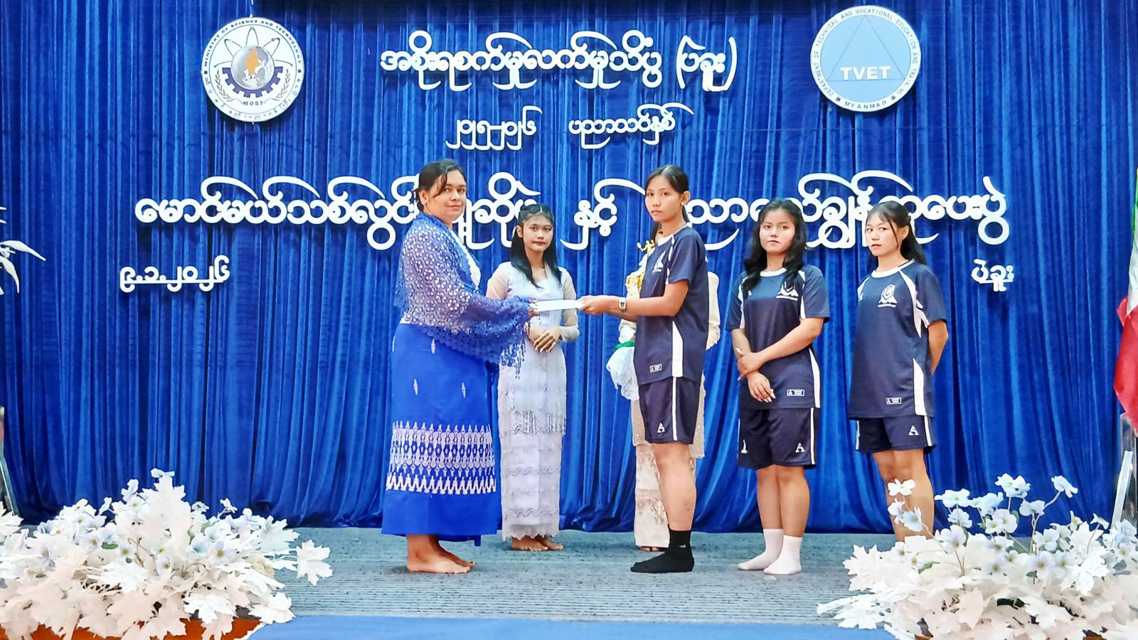 ထို့နောက် ကျောင်းအုပ်ဆရာကြီး ဦးဩဩကျော်နှင့် ဆရာ၊ ဆရာမများက ကြက်တောင်ရိုက်ပြိုင်ပွဲ၊ ပိုက်ကျော်ခြင်းပြိုင်ပွဲ၊ Table Tennis ပြိုင်ပွဲများတွင် ဆုရရှိခဲ့ကြသည့် ကျောင်းသား၊ ကျောင်းသူများအား ဆုများအသီးသီးချီးမြှင့်ခဲ့ကြသည်။