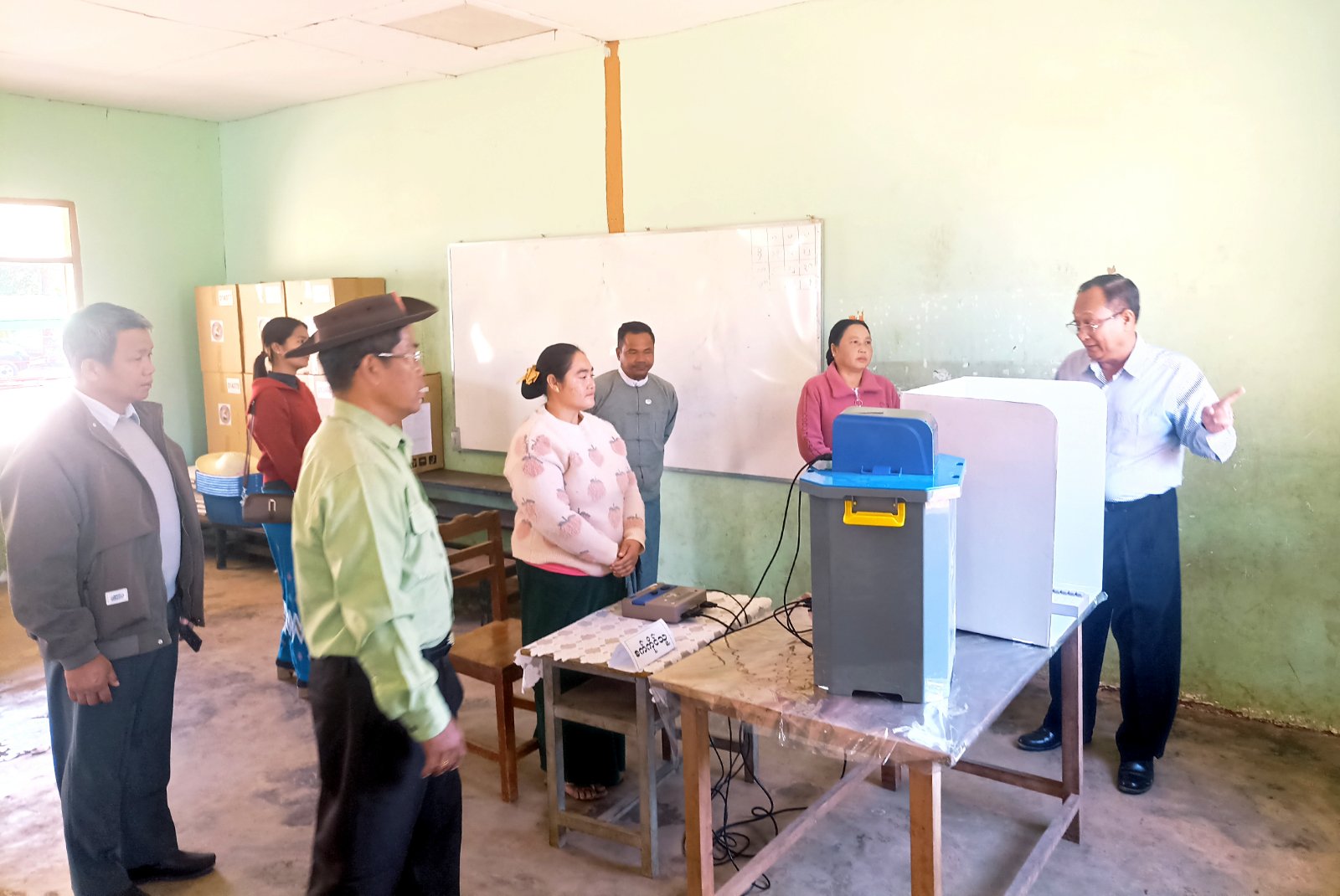 ထိုသို့စစ်ဆေးရာတွင် မိုင်းရယ်မြို့နယ် အမှတ်(၁)ရပ်ကွက်၊ အမှတ်(၂)ရပ်ကွက်၊ အမှတ်(၃) ရပ်ကွက်တို့ရှိ မဲရုံ(၅)ရုံတို့ကို စစ်ဆေးကြည့်ရှုခဲ့ပြီး ပြည်ထောင်စုရွေးကောက်ပွဲကော်မရှင်အဖွဲ့ဝင် ရှမ်းပြည်နယ်(မြောက်ပိုင်း) တာဝန်ခံဦးမြင့်ဦးက ရပ်ကျေးကော်မရှင်ဥက္ကဋ္ဌနှင့် အဖွဲ့ဝင်များ၊ မဲရုံမှူး၊ ဒုမဲရုံမှူးနှင့် မဲရုံအဖွဲ့ဝင်များအား မဲပေးရာတွင် စနစ်တကျ မြန်ဆန်မှန်ကန်မှုရှိစေရေး ဆောင်ရွက်ရမည့်အချက်များ၊ မဲပေးစက်များစနစ်တကျ ကိုင်တွယ်ရမည့်အချက်များ၊ ဆန္ဒမဲပေးပိုင်ခွင့်ရှိသူများ ဆန္ဒမဲပေးပိုင်ခွင့်မဆုံးရှုံးစေရေးအတွက် ဆောင်ရွက်ရမည့်လုပ်ငန်းများ၊ အဆိုင်းတိုးမဲရုံ မဲရုံအမှတ်(၃)ရှိ မဲရုံမှူးနှင့် မဲရုံအဖွဲ့ဝင်များ၏ လုပ်ငန်းကျွမ်းကျင်စွာ ဆောင်ရွက်ရမည့်အခြေအနေများကို ရှင်းလင်းမှာကြားခဲ့ပြီး မဲရုံမှူးနှင့် မဲရုံအဖွဲ့ဝင်များ၏ တင်ပြချက်များအပေါ် လိုအပ်သည်များ ပေါင်းစပ်ဆောင်ရွက်ခဲ့သည်။ ထို့နောက် မိုင်းရယ်မြို့နယ်၊ လွယ်ငင်းကျေးရွာ မဲရုံတွင် ကြိုတင်ဆန္ဒမဲပေးနေမှုများကို ကြည့်ရှုစစ်ဆေးခဲ့ကြောင်း သိရသည်။