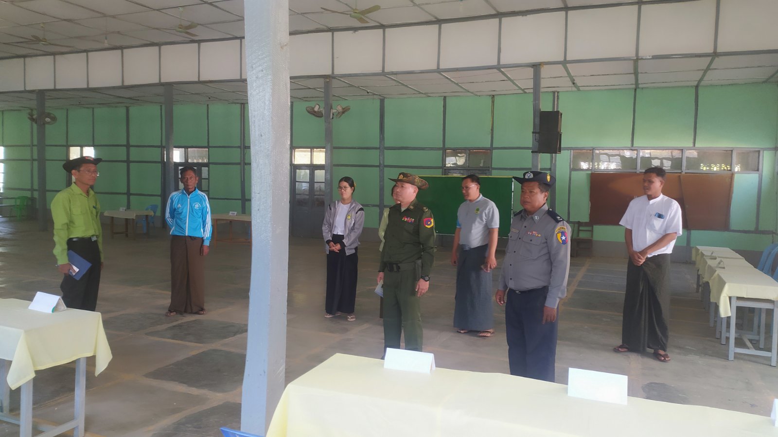 ထိုသို့ကွင်းဆင်းစစ်ဆေးဆောင်ရွက်ရာတွင် မြို့နယ်စီမံခန့်ခွဲရေးနှင့်အုပ်ချုပ်ရေးကော်မတီအဖွဲ့ဝင်များ၊ ခရိုင်နှင့်မြို့နယ်ရွေးကောက်ပွဲကော်မရှင်အဖွဲ့ခွဲဥက္ကဋ္ဌနှင့်အဖွဲ့ဝင်များ၊ သက်ဆိုင်ရာရပ်ကွက်အုပ်ချုပ်ရေးမှူးများ၊ ရာအိမ်မှူးများ၊ ရပ်ကျေးကော်မရှင်အဖွဲ့ခွဲဥက္ကဋ္ဌနှင့် အဖွဲ့ဝင်များပါဝင်သောအဖွဲ့များက မဲရုံအဖြစ် အသုံးပြုမည့် အဆောက်အဦးများဖြစ်သော ဘုရားကြီးရပ်ကွက် မဲရုံအမှတ် (၁)၊ ကွက်သစ်ရပ်ကွက်မဲရုံအမှတ် (၁)၊ စျေးရပ်ကွက် မဲရုံအမှတ်(၁)၊ မင်းရပ်ကွက်မဲရုံအမှတ်(၁)၊ လယ်ပြင်ရပ်ကွက်မဲရုံအမှတ်(၁)၊ ပုတီးကုန်းကျေးရွာ မြို့လုလင်ကျေးရွာမဲရုံတို့ ပြင်ဆင်ထားရှိမှုအား ကြည့်ရှုစစ်ဆေးခဲ့ရာ ခရိုင်ရွေးကောက်ပွဲအရာရှိက မဲရုံများ ပြင်ဆင်ဆောင်ရွက်ထားရှိမှုအား ရှင်းလင်းတင်ပြခဲ့ပြီး မြို့နယ်စီမံခန့်ခွဲရေးနှင့်အုပ်ချုပ်ရေးကော်မတီဥက္ကဋ္ဌက မဲပေးစက်များ ကိုင်တွယ်အသုံးပြုမှုနှင့်စပ်လျဉ်း၍ ပညာပေးလုပ်ငန်းများ တိုးမြှင့်ဆောင်ရွက်ရေး၊ မဲရုံလုံခြုံရေးအထူးဂရုပြု၍ စီမံဆောင်ရွက်နိုင်ရေးနှင့် လိုအပ်ချက်များအား ပေါင်းစပ်ညှိနှိုင်းဆောင်ရွက်ပေးခဲ့ကြောင်း သိရသည်။