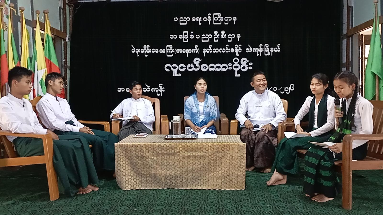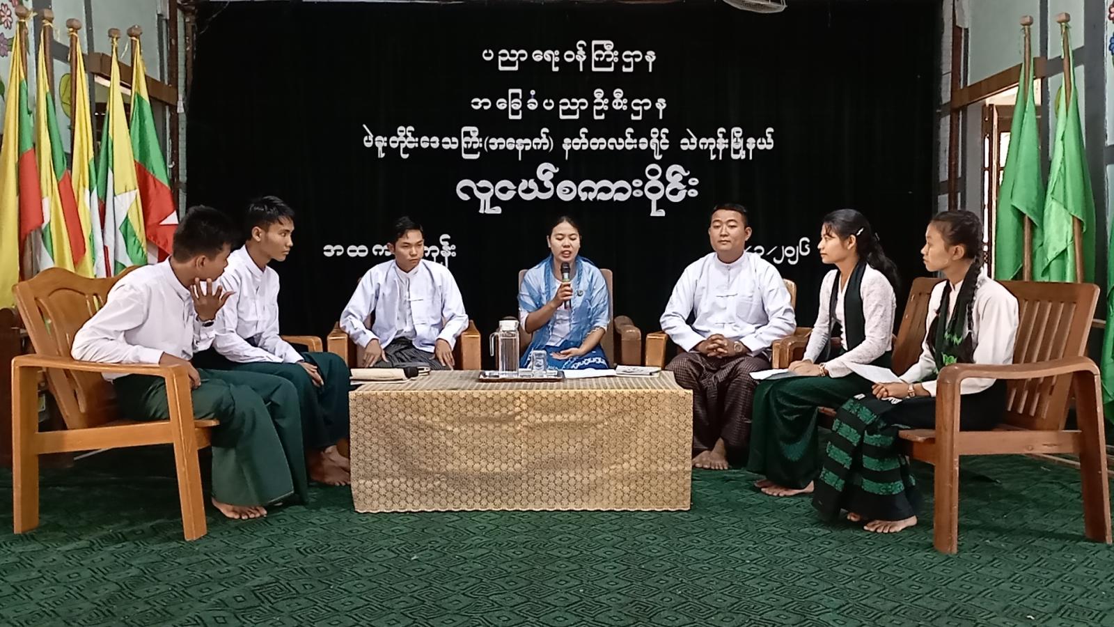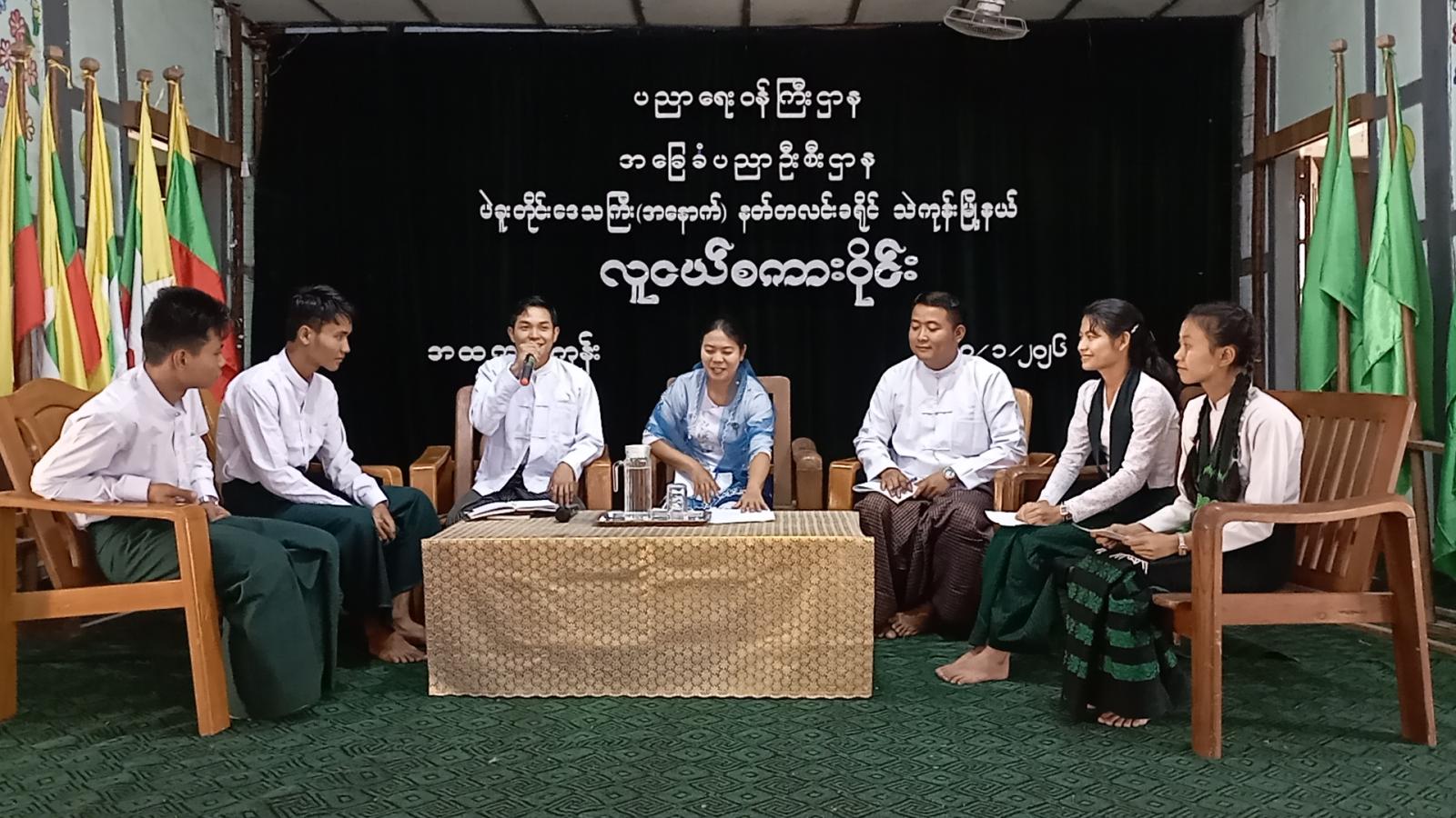 ထို့နောက် လူငယ်စကားဝိုင်းတွင် ဆွေးနွေးခဲ့ကြသော ကျောင်းသား/ ကျောင်းသူများအား တာဝန်ရှိသူများက အမှတ်တရလက်ဆောင်များ ပေးအပ်ချီးမြှင့်ခဲ့၍ ပြန်ကြားရေးနှင့်ပြည်သူ့ဆက်ဆံရေးဦးစီးဌာနမှ ခင်းကျင်းပြသထားသော သုတ/ရသ စာအုပ်စာစောင်များနှင့် အသိပညာပေး နံရံကပ်စာစောင်များအား ကျောင်းသား/ကျောင်းသူများက စိတ်ပါဝင်စားစွာ ကြည့်ရှုလေ့လာခဲ့ကြောင်း သိရသည်။