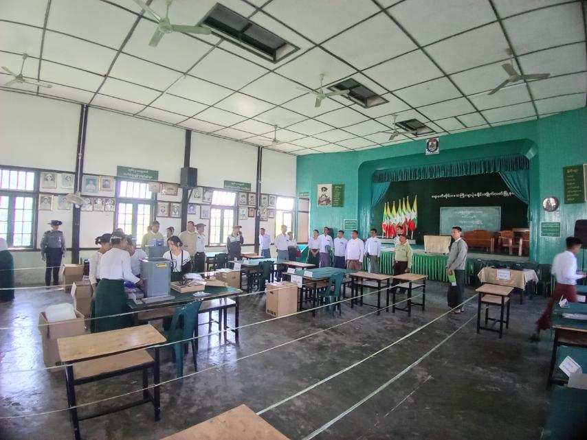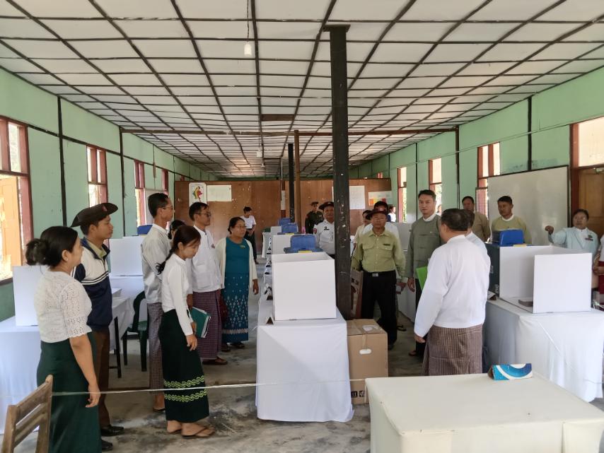 ပြည်ထောင်စုရွေးကောက်ပွဲကော်မရှင်အဖွဲ့ဝင် ဦးတင်ဆွေဝင်းနှင့်အဖွဲ့သည် ယမန်နေ့နံနက်ပိုင်းက တာဝန်ရှိသူများနှင့်အတူ ကျိုက်လတ်မြို့နယ် အတွင်းရှိ မဲရုံများပြင်ဆင်ဆောင်ရွက်ထားရှိမှုအား လိုက်လံကြည့်ရှုစစ်ဆေးခဲ့သည်။