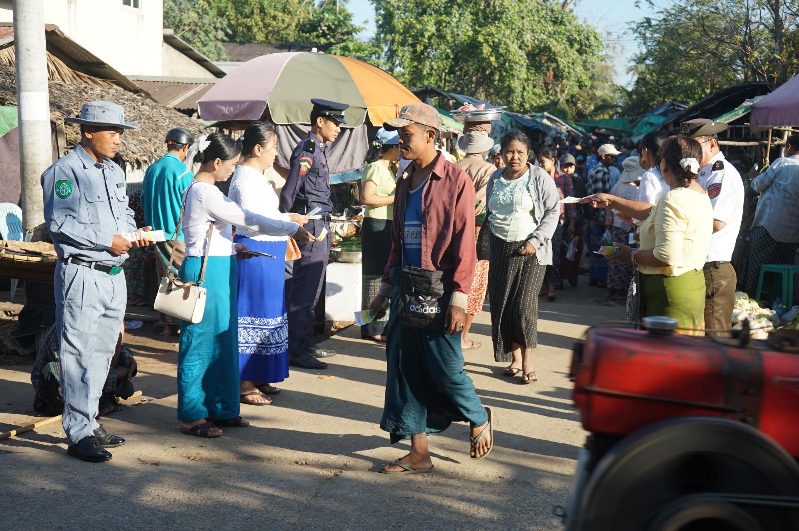 ဖြန့်ဝေရာတွင် အမှတ်(၁၈)လမ်းဈေးပတ်ဝန်းကျင်၊ မော်တော်ယာဉ်ဂိတ်နှင့် အနှေးယာဉ်ဂိတ်များ၊ အမှတ်(၁၈)လမ်းတစ်လျှောက်စသည့် လူစည်ကားရာ အရပ်များတွင် လှုံ့ဆော်လှုပ်ရှား ဖြန့်ဝေပေးခဲ့ကြပြီး ရွေးကောက်ပွဲတွင် အားလုံးပါဝင်မဲပေးနိုင်ရေး လှုံ့ဆော်ခဲ့ကြကြောင်း သိရသည်။