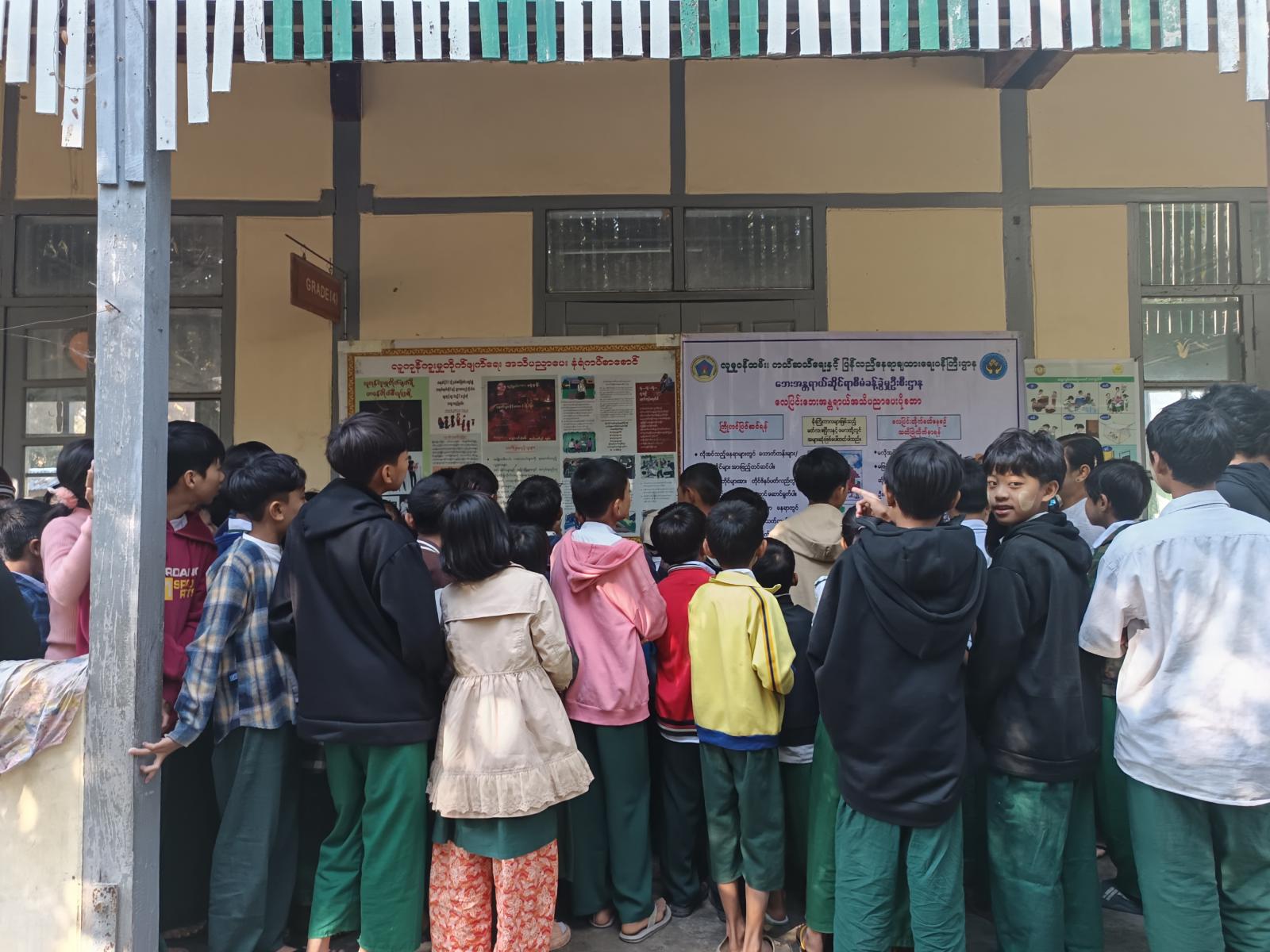 ဆက်လက်၍ ပြန်ကြားရေးနှင့်ပြည်သူ့ဆက်ဆံရေးဦးစီးဌာနမှ ကျောင်းသား၊ ကျောင်းသူလေးများကို လူကုန်ကူးမှုတိုက်ဖျက်ရေးနေ့ အထိမ်းအမှတ်နံရံကပ်စာစောင်၊ မူးယစ်ဆေးဝါးအန္တရာယ် အသိပညာပေးနံရံကပ်စာစောင်၊ ကလေးအလုပ်သမားပပျောက်ရေး နံရံကပ်စာစောင်၊ ပြသရာ ကျောင်းသား၊ ကျောင်းသူများမှ စိတ်ပါဝင်စားစွာ ကြည့်ရှုလေ့လာခဲ့ကြောင်း သိရသည်။