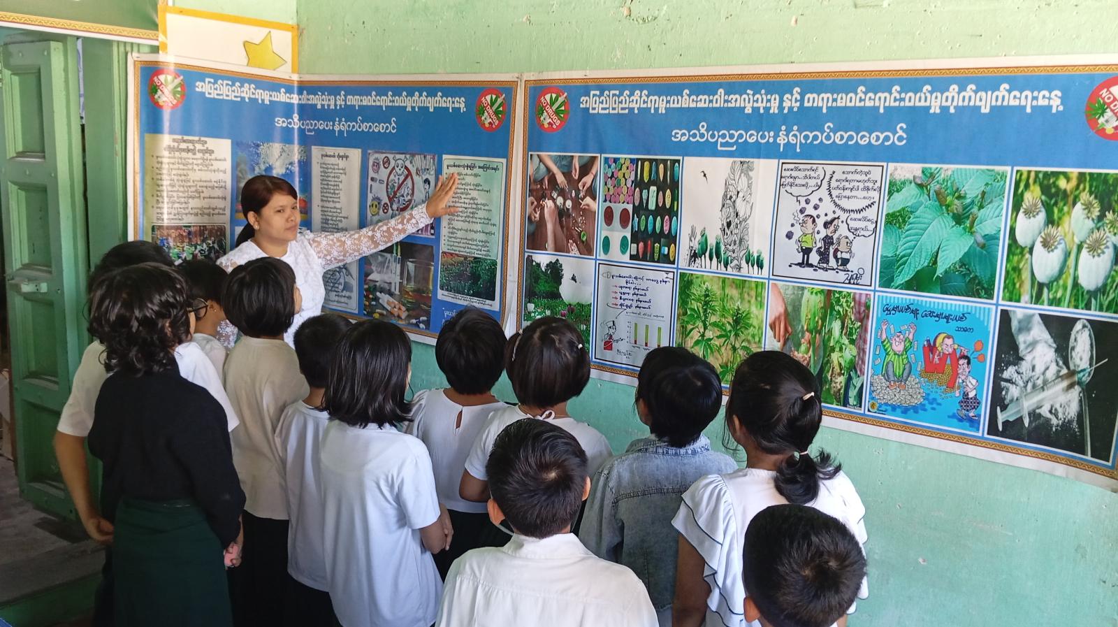 ပြိုင်ပွဲအပြီးတွင် တက်ရောက်လာသည့် ကျောင်းသား၊ ကျောင်းသူများက မြို့နယ်ရုံးက ခင်းကျင်း ပြသထားသော မူးယစ်ဆေးဝါးအန္တရာယ် တားဆီးကာကွယ်ရေး အသိပညာပေး စာအုပ် စာစောင်များနှင့် နံရံကပ်စာစောင်များအား စိတ်ဝင်တစားလေ့လာခဲ့ကြကြောင်း သိရသည်။