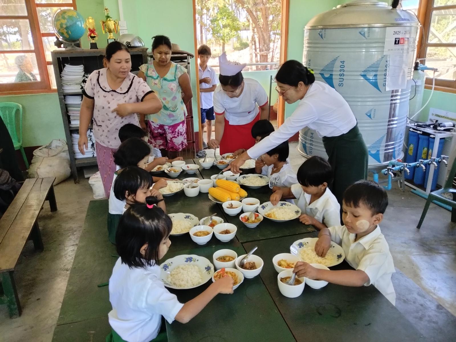 ထို့ကြောင့် KG -တန်းကျောင်းသား၊ ကျောင်းသူများအား အာဟာရ ကျွေးမွေးရာတွင် အစာအုပ်စု(၃)အုပ်စုပေါ် မူတည်၍ ရွေးချယ်သတ်မှတ်ပြီး ဘေးအန္တရာယ်ကင်းရှင်းစေရန် ချက်ပြုတ်ပြင်ဆင်ကာ ရွှေသောင်ယံမြို့ကျန်းမာရေးဌာနမှ တာဝန်ရှိသူများ၊ သက်ဆိုင်ရာကျောင်းများမှ ဆရာ၊ ဆရာမများ၊ ကျောင်းသားမိဘများမှ ဝိုင်းဝန်းစီစဉ်ဆောင်ရွက်၍ ကျွေးမွေးပြုစုပေးခဲ့ကြောင်းသိရသည်။