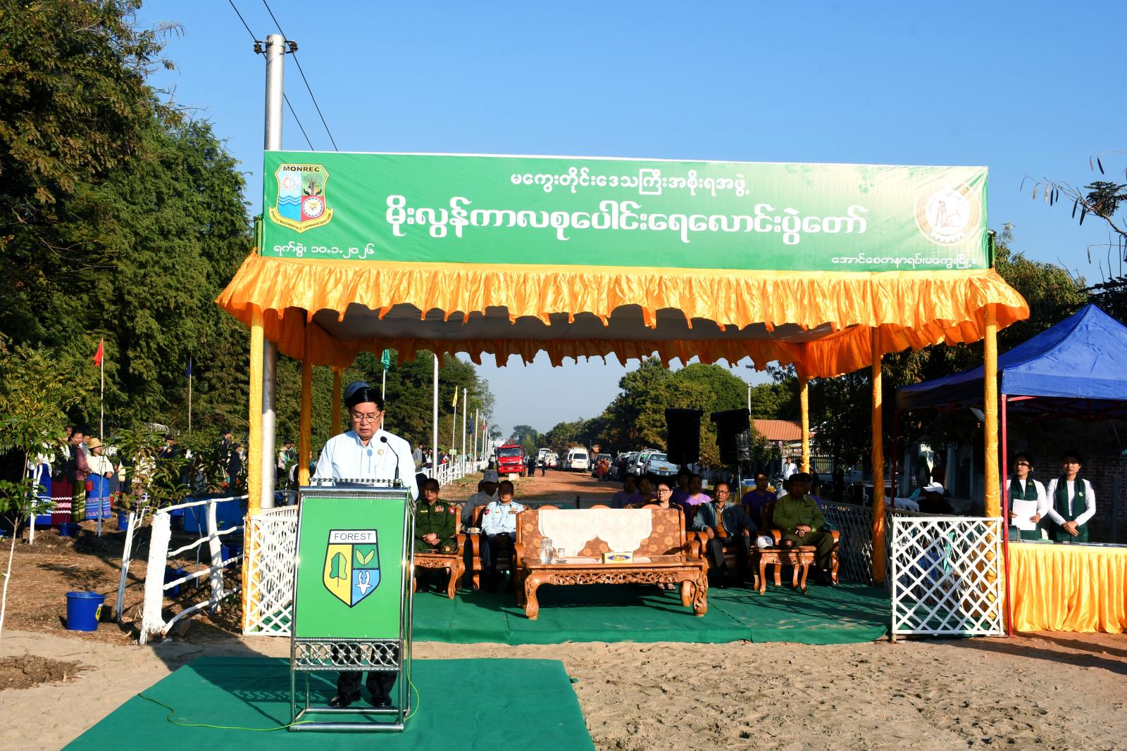 မိုးလွန်ကာလစုပေါင်းရေလောင်းပွဲတော်အခမ်းအနားတွင် မကွေးတိုင်းဒေသကြီးအစိုးရအဖွဲ့ ဝန်ကြီးချုပ် ဦးတင့်လွင်က ယနေ့ကျင်းပသည့်မိုးလွန်ကာလ စုပေါင်းရေလောင်းပွဲတော် အခမ်းအနားကို တိုင်းဒေသကြီးအစိုးရအဖွဲ့အနေဖြင့် ဒုတိယအကြိမ် ထပ်မံကျင်းပခြင်းဖြစ်ပြီး၊သစ်တောသယံဇာတများ ရေရှည်တည်တံ့စေဖို့၊ ဂေဟစနစ်ထိန်းသိမ်းနိုင်ဖို့နှင့် သစ်တောထိန်းသိမ်းရေးလုပ်ငန်းများမှာ ပြည်သူများတက်ကြွစွာပူးပေါင်းပါဝင်လာစေဖို့ရည်ရွယ်ပြီးကျင်းပခြင်းဖြစ်ကြောင်း၊ မိမိတို့မကွေးတိုင်း ဒေသကြီးအတွင်း ခရိုင်၊မြို့နယ်အလိုက်လူထုလှုပ်ရှားမှုအသွင်ဖြင့် မိုးရာသီသစ်ပင်စိုက်ပျိုးပွဲများ ကျင်းပခဲ့ပြီး စိုက်ပျိုးပြီးသစ်ပင်များအား မိုးရာသီအလွန်ပူပြင်းခြောက်သွေ့တဲ့ရာသီဥတုကို ကာလရှည်ရင်ဆိုင်အံတုနိုင်ဖို့ စိုက်ပျိုးပြီးသစ်ပင်များ ဆက်လက်ရှင်သန်ကြီးထွားဖို့အတွက်ရေလောင်းခြင်းသည်အခြေခံအကျဆုံးနှင့် အရေးကြီးဆုံးလုပ်ငန်းစဉ်တစ်ခုဖြစ်ပြီး စိုက်ပျိုးပြီး သစ်ပင်များ ရှင်သန်ဖြစ်ထွန်းမှုရှိမှသာ ဂေဟစနစ်နှင့်သဘာဝပတ်ဝန်းကျင်ကိုများစွာအထာက်အကူဖြစ်စေမှာဖြစ်ကြောင်း၊စိုက်ပျိုးပြီး သစ်ပင်များအား မိုးရာသီအလွန် ပူပြင်းခြောက်သွေ့တဲ့ရာသီဥတုကို ကာလရှည်ရင်ဆိုင်အံတုနိုင်ဖို့ ပြည်သူများပါဝင် စုပေါင်း၍ မြေဆွေးထည့်ခြင်း၊ အမြစ်ဇုန်ထိရောက်အောင် ရေလောင်းခြင်း၊ ပေါင်းရှင်းခြင်း၊ ဓာတ်မြေဩဇာကျွေးခြင်း၊ မြေပဲခွံများဖုံးအုပ်ခြင်း လုပ်ငန်းများကို ရာသီအလိုက် လုပ်ဆောင်၍ထိန်းသိမ်းရမှာဖြစ်ကြောင်း၊ နိုင်ငံတစ်နိုင်ငံ ဖွံ့ဖြိုးတိုးတက်ရန် လိုအပ်ချက်များစွာရှိတဲ့အနက် ပတ်ဝန်းကျင်ထိန်းသိမ်းရေးသည် အဓိကကျကြောင်း သဘာဝပတ်ဝန်းကျင် ပျက်စီးသွားပါက စီးပွားရေး၊ လူမှုရေးဖွံ့ဖြိုးတိုးတက်ရန် အလွန်ခဲယဉ်းသွားမှာဖြစ်သည့်အတွက် “နိုင်ငံတော်သာယာဖို့ သဘာဝပတ်ဝန်းကျင်ထိန်းကြစို့”ဟုသော ဆောင်ပုဒ်နှင့်အညီ စိုက်ပျိုးပြီး တဲ့သစ်ပင်များကို တစ်ပင်စိုက်လျှင် တစ်ပင်ရှင်သန်အောင်မြင်အောင် ပြုစုထိန်းသိမ်း၍ သဘာဝပတ်ဝန်းကျင်ကောင်း ရရှိရေးအတွက် သစ်တောသစ်ပင်များ စုပေါင်းရေလောင်းပြုစုပြီး ရေရှည် တည်တံ့အောင် မိမိတို့ကျေးရွာ၊ ရပ်ကွက်၊ မြို့နယ်ပြည်သူများအနေဖြင့် အမျိုးသားရေး တာဝန် တစ်ရပ်အနေဖြင့် ဝိုင်းဝန်းထိန်းသိမ်းပေးကြစေလိုကြောင်း တိုက်တွန်းမှာကြားခဲ့သည်။