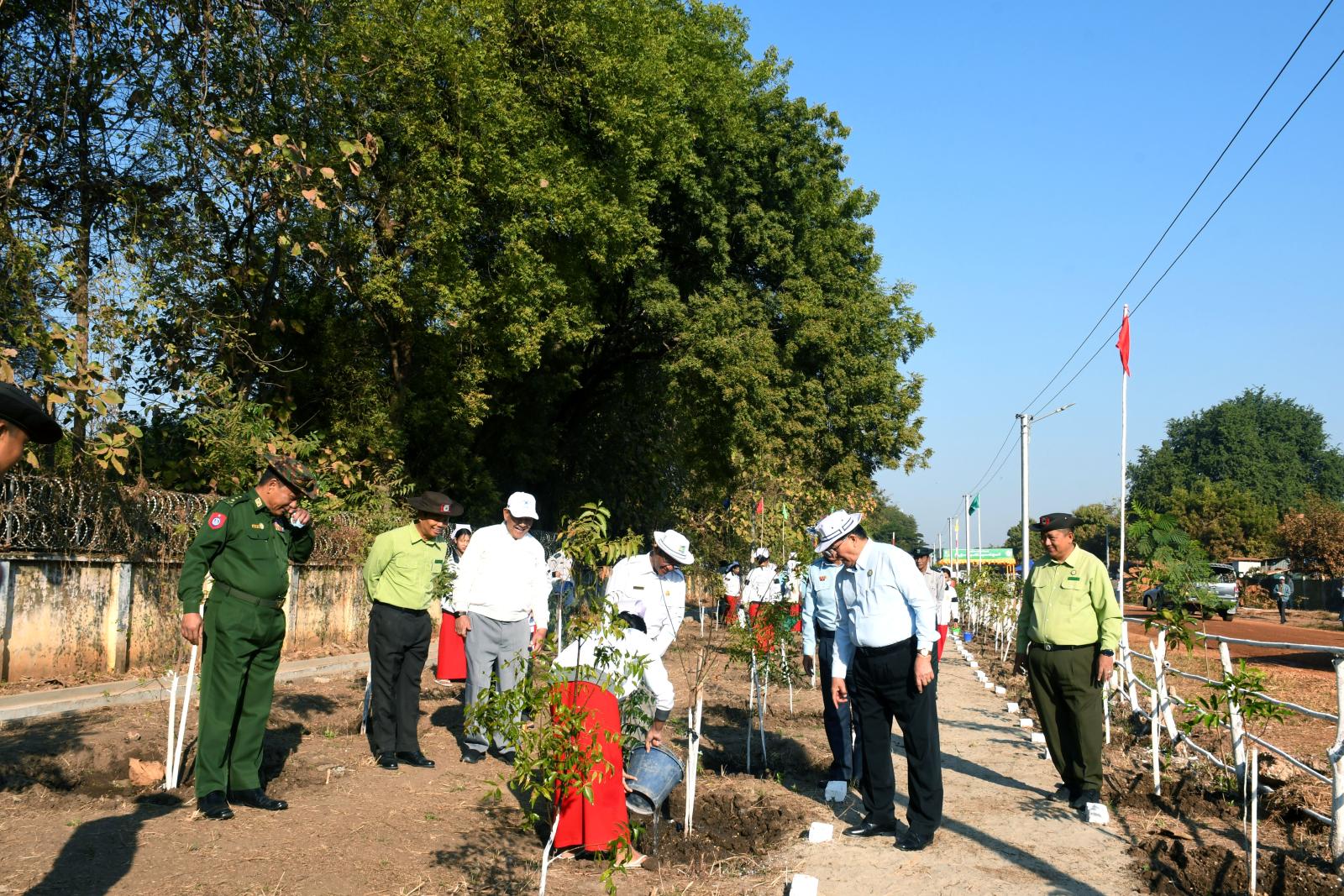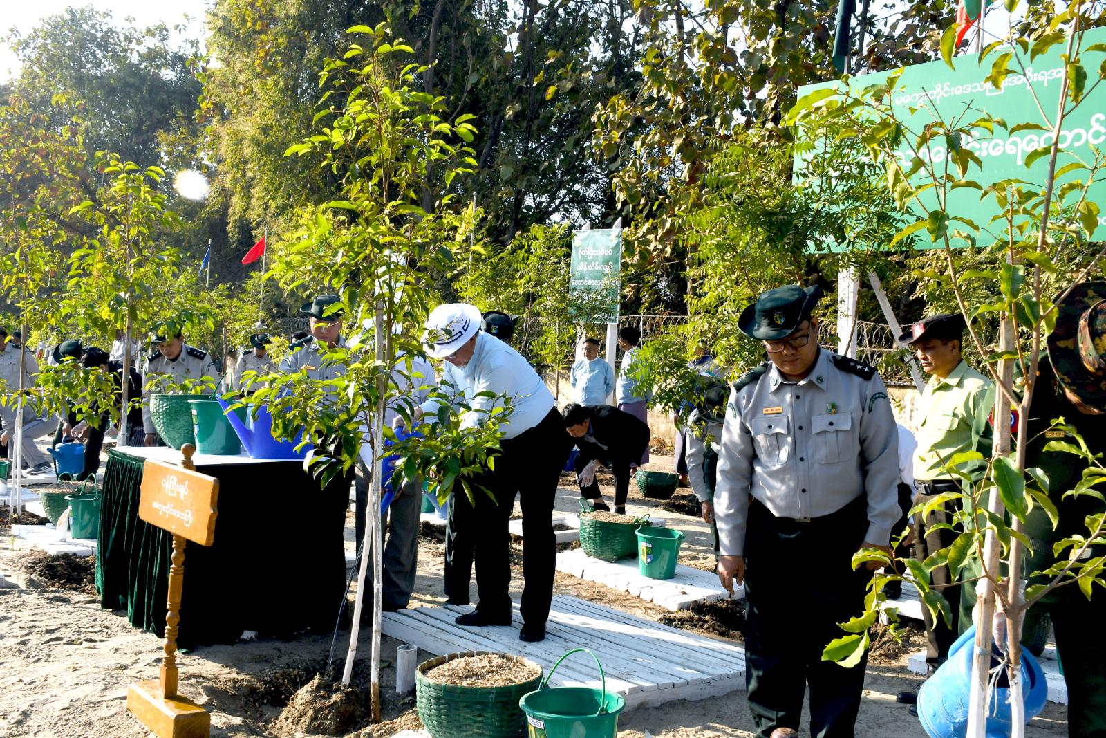 ဆက်လက်၍ တိုင်းဒေသကြီးဝန်ကြီးချုပ်နှင့် တာ၀န်ရှိသူများ၊ ဌာနဆိုင်ရာဝန်ထမ်းများ၊ လူမှုရေးအသင်းအဖွဲ့ဝင်များနှင့် ကျောင်းသား/သူများက အရိပ်ရအပင်များနှင့် လေကာတန်းပင်များအား ဓာတ်မြေဩဇာကျွေးခြင်း၊ မြေပဲခွံများဖုံးအုပ်၍ သစ်မျိုး(၁၀)မျိုး၊ အပင်ပေါင်း(၁၂၀၀)ပင်အား တစ်ပျော်တစ်ပါးရေလောင်းခဲ့ကြရာတိုင်းဒေသကြီးဝန်ကြီးချုပ်နှင့် တာဝန်ရှိသူများကစိုက်ပျိုးပြီးသော သစ်ပင်များရေလောင်းပြုစုထိန်း သိမ်းနေမှုကို လှည့်လည်ကြည့်ရှုအားပေးခဲ့ကြောင်းသိရသည်။