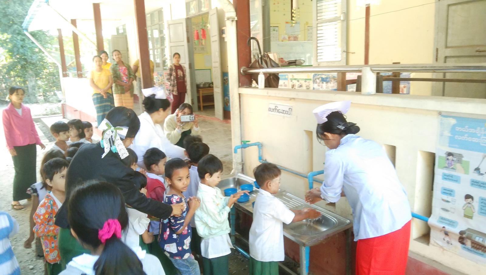 ရှေးဦးစွာ မြို့နယ်မိခင်နှင့်ကလေးစောင့်ရှောက်ရေးဌာန မြို့နယ်သူနာပြုအဆင့်(၁) ဦးအေးနိုင်၊ အမျိုးသမီးကျန်းမာရေးဆရာမနှင့် ဘက်စုံသားဖွား ဆရာမများက KG ကျောင်သား၊ ကျောင်းသူများအား တစ်ကိုယ်ရေသန့်ရှင်းရေး သန့်လေးသန့်ဖြင့် စနစ်တကျလက်ဆေးနည်း၊ သွားနှင့်ခံတွင်း ကျန်းမာစေရေး စနစ်တကျသွားတိုက်နည်းများကို သင်ကြားပြသပေးကြသည်။ ထို့နောက် KG ကျောင်သား၊ ကျောင်းသူများအား ကျန်းမာရေးနှင့်ညီညွတ်စေသည့် ထမင်း၊ ကြက်သားဟင်း၊ ချဉ်ဟင်းနှင့် ဖြည့်စွက်အစာ ငှက်ပျောသီးတို့ကို ဆရာ၊ ဆရာမများ၊ ကျောင်းသားမိဘများနှင့်ပူးပေါင်းကာ ကျွေးမွေးပေးခဲ့ကြကြောင်း သိရသည်။