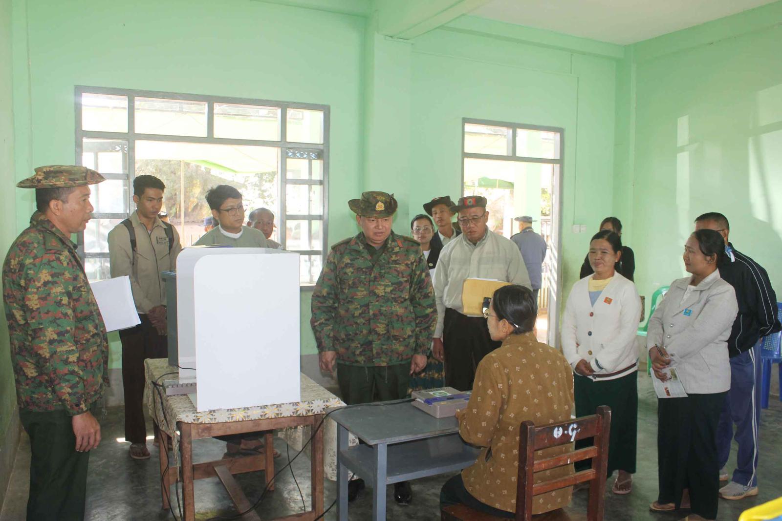 ဦးစွာ လုံခြုံရေးနှင့်နယ်စပ်ရေးရာဝန်ကြီး ဗိုလ်မှူးကြီး စိန်ဝင်းနှင့် အဖွဲ့သည် ပါတီစုံဒီမိုကရေစီအထွေထွေရွေးကောက်ပွဲ အောင်မြင်စွာကျင်းပနိုင်ရေးအတွက် ဆီဆိုင်မြို့နယ်အတွင်း နောင်မွန်ကျေးရွာ အခြေခံပညာအထက်တန်းကျောင်းရှိ မဲရုံအမှတ်(၁)၊ အမှတ်(၄)၊ ဘန်းယဉ်ကျေးရွာအခြေခံပညာအထက်တန်းကျောင်းရှိ မဲရုံအမှတ်(၆)၊ မြကန်သာရပ်ကွက် အခြေခံပညာအထက်တန်းကျောင်း(ဆီဆိုင်)ရှိ မဲရုံအမှတ်(၁)၊ မင်္ဂလာရပ်ကွက် အခြေခံပညာမူလတန်းကျောင်း(၄)ရှိ မဲရုံအမှတ်(၁)၊ အောင်သပြေရပ်ကွက် အခြေခံပညာအထက်တန်းကျောင်းရှိ မဲရုံအမှတ်(၁)၊ သီရိရပ်ကွက်အတွက် မဲရုံအမှတ်(၁)နှင့် အောင်ချမ်းသာရပ်ကွက် အခြေခံပညာအလယ်တန်းကျောင်းခွဲရှိ မဲရုံအမှတ်(၁)၊ အမှတ်(၂)ကိုလည်းကောင်း သွားရောက်၍ မဲရုံများပြင်ဆင်ထားရှိမှုများအား ကြည့်ရှုစစ်ဆေးပြီး ပြည်နယ်ဝန်ကြီးက မဲဆန္ဒရှင်ပြည်သူများ မဲပေးရာတွင် အဆင်ပြေစေရေး မဲရုံများ စနစ်တကျရှိစေရေး အလေးထားဆောင်ရွက်ရန်၊ ပြည်သူများ အေးချမ်းလွတ်လပ်စွာ ဆန္ဒမဲပေးနိုင်ရေး စီမံဆောင်ရွက်ပေးရန်နှင့် သက်ဆိုင်ရာတာဝန်ရှိသူများအားလုံးက ပူးပေါင်းဆောင်ရွက်ကြရန်မှာကြားပြီး လိုအပ်သည်များ ပေါင်းစပ်ဖြည့်ဆည်း ဆောင်ရွက်ပေးခဲ့ကြောင်း သိရသည်။