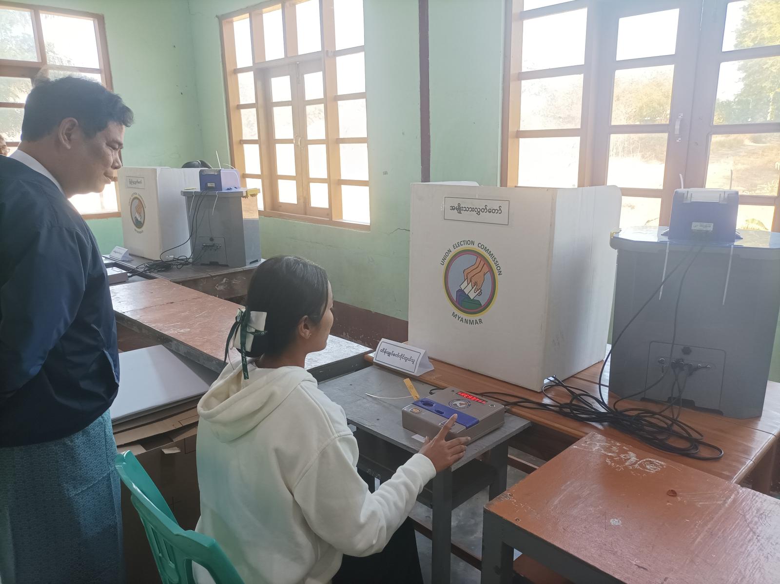 အဆိုပါမဲဆန္ဒရှင်ပြည်သူများစိတ်အေးချမ်းပျော်ရွှင်စွာမဲပေးနိုင်ရေးပြည်ထောင်စုရွေးကောက်ပွဲကော်မရှင်က ဖြန့်ဝေပေးထားသည့် မြန်မာအီလက်ထရောနစ် မဲပေးစက်(MEVM) အလုံးရေ ၂၀၃ အသုံးပြု၍ စနစ်တကျ ဆန္ဒမဲလာရောက်ပေးနေမှုအား ခရိုင်စီမံခန့်ခွဲရေးနှင့် အုပ်ချုပ်ရေးကော်မတီအဖွဲ့ဥက္ကဋ္ဌဦးသက်လွင်နှင့်အဖွဲ့ဝင်များ၊ မြို့နယ်စီမံခန့်ခွဲရေးနှင့်အုပ်ချုပ်ရေးကော်မတီဥက္ကဋ္ဌဦးကျော်ငြိမ်းထွန်းနှင့်အဖွဲ့ဝင်များက လှည့်လည်ကြည့်ရှုအားပေးခဲ့ပြီး မဲဆန္ဒရှင်ပြည်သူများ အဆင်ပြေချောမွေ့စွာ ဆန္ဒမဲပေးနိုင်ရေး မှာကြားဆွေးနွေးခဲ့ကြောင်း သိရသည်။