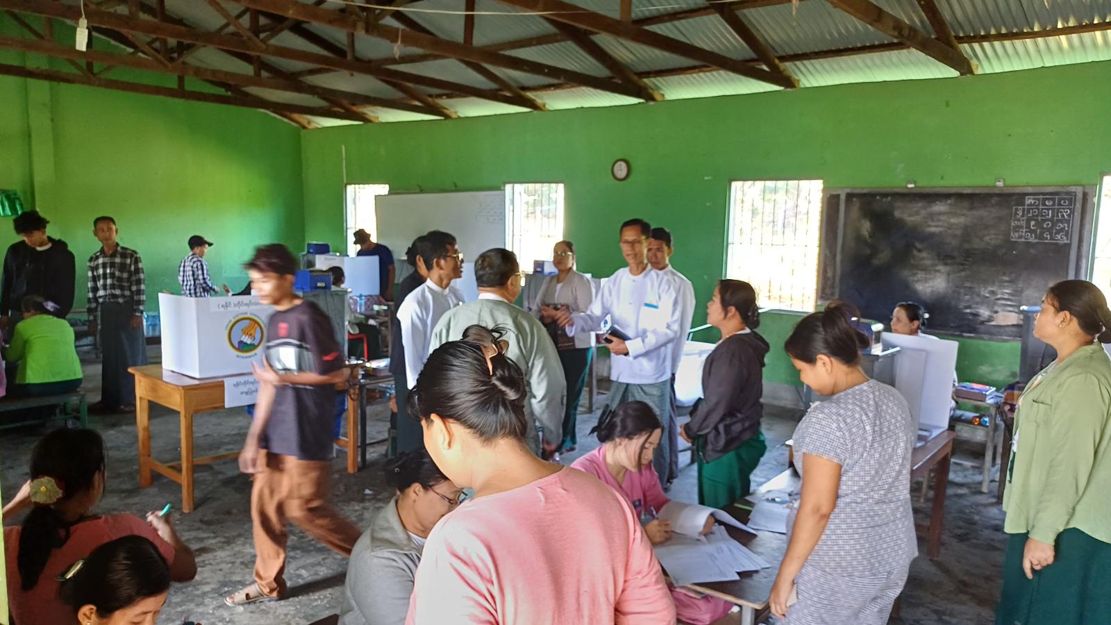 ပြည်ထောင်စုရွေးကောက်ပွဲကော်မရှင်အဖွဲ့ဝင်ဧရာဝတီတိုင်းဒေသကြီး တာဝန်ခံ ဦးတင်ဆွေဝင်းနှင့် တာဝန်ရှိသူများသည် ဇန်နဝါရီ ၁၁ ရက် ယနေ့နံနက်ပိုင်းက ပါတီစုံဒီမို ကရေစီ အထွေထွေရွေးကောက်ပွဲအပိုင်း (၂) တွင်ပါဝင်သည့် ဧရာဝတီတိုင်းဒေသကြီး၊ ဖျာပုံမြို့နယ်အတွင်းရှိ မဲရုံများ၌ပြည်သူများ အေးချမ်းစွာဆန္ဒမဲလာရောက်ပေးနေမှုအား လိုက်လံကြည့်ရှု အားပေးခဲ့ကြောင်းသိရသည်။