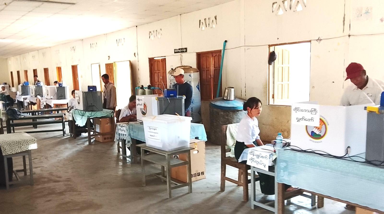 ယနေ့နံနက် စောစောကပင် မဲရုံကြီးကြပ်ရေးမှူး၊ မဲရုံမှူးနှင့် မဲရုံတာဝန်ရှိသူများက လွှတ်တော်တစ်ရပ်စီအတွက် ထိန်းချုပ်စက်၊ ဆန္ဒပြုစက်၊ မဲပေးစက်ဖော်ပြသည့်စက်နှင့် အီလက်ထရောနစ်မဲပေးစက်တို့ကို ကြိုတင်စနစ်တကျတပ်ဆင်စစ်ဆေးပြီးနောက် နံနက် ၆ နာရီတိတိတွင် မဲရုံမှူးများက အသံချဲ့စက်ဖြင့် မဲရုံဖွင့်လှစ်ကြောင်း အသံချဲ့စက်ဖြင့် ကြေညာပေးခဲ့ကြကြောင်း သိရသည်။