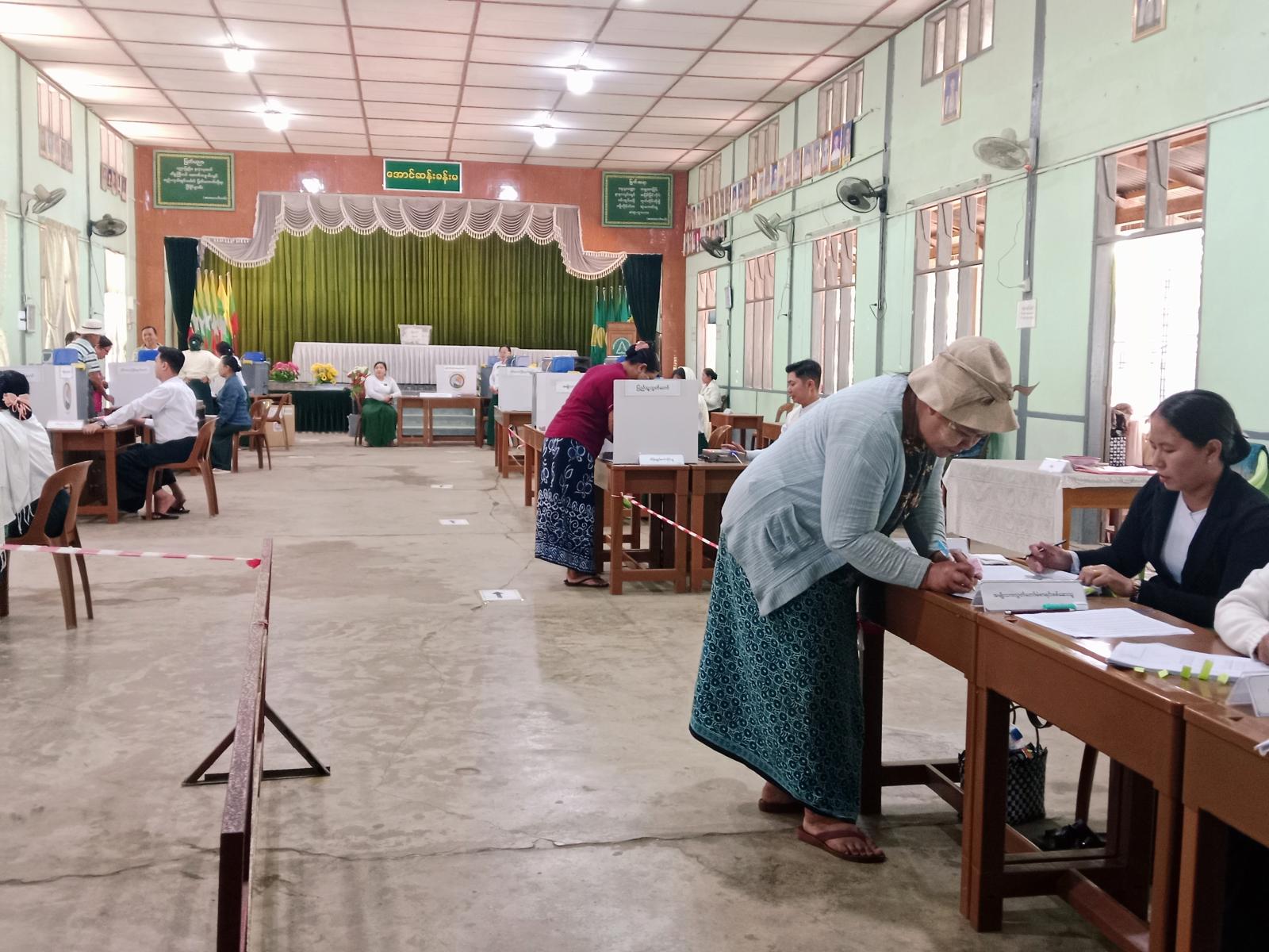 လှည်းကူးမြို့နယ်၌ မဲဆန္ဒရှင်ပြည်သူများ ဆန္ဒမဲပေးလျက်ရှိ