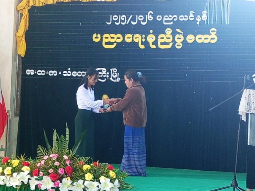ထို့နောက် ကျောင်းသား၊ ကျောင်းသူလေးများက အကပဒေသာများဖြင့် တင်ဆက်ကပြဖျော်ဖြေခဲ့ရာ တက်ရောက်လာသူများက ဆုတော်ငွေများ ပေးအပ်ချီးမြှင့်ခဲ့ကြကြောင်း သိရသည်။