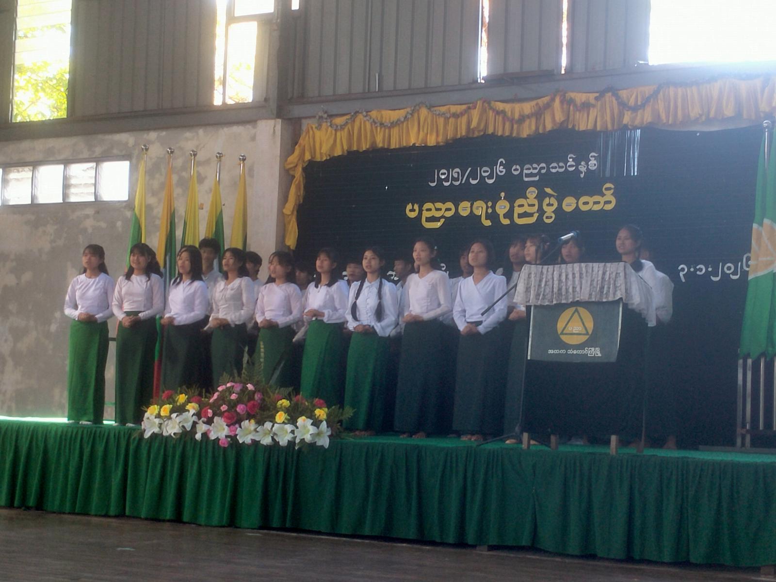 ဦးစွာ Grade -9 ကျောင်းသား၊ ကျောင်းသူလေးများက ပညာရေးစုံညီပွဲတော်သီးချင်းဖြင့် သီဆိုပြီး မြို့နယ်ပညာရေးမှူး ဦးအောင်အောင်ပြည့်က အဖွင့်အမှာစကား ပြောကြားသည်။