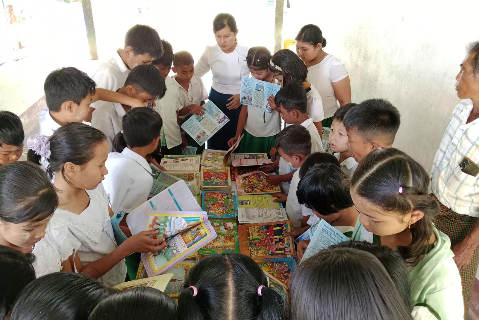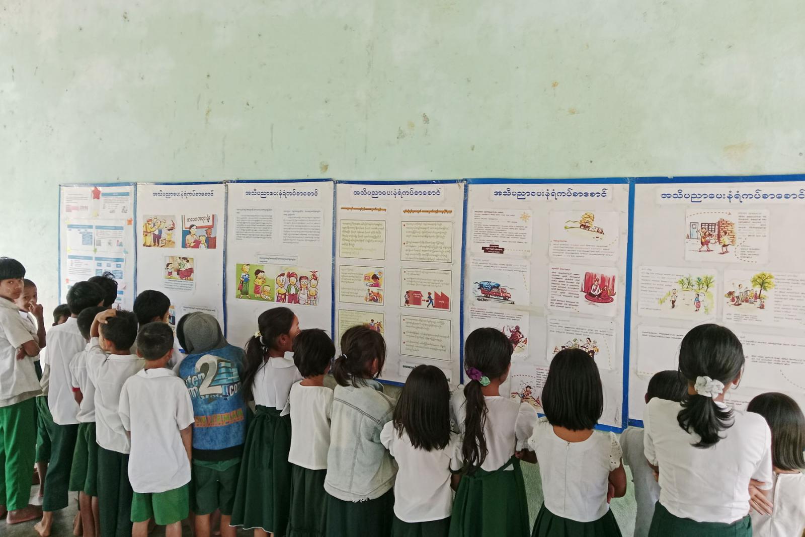 ထို့နောက် ပြန်ကြားရေးနှင့်ပြည်သူ့ဆက်ဆံရေးဦးစီးဌာနမှ စာဖတ်ရှိန်မြှင့်တင်ရေးအသိပညာပေး စာအုပ်စာစောင်များ၊ ကလေးအလုပ် သမားလျော့နည်းပပျောက်ရေး အသိပညာပေး နံရံကပ်စာစောင်များ ခင်းကျင်းပြသထားရာ ကျောင်းသား၊ ကျောင်းသူများ စိတ်ပါဝင်စားစွာ ကြည့်ရှုလေ့လာ ဖတ်ရှုခဲ့ကြကြောင်း သိရသည်။