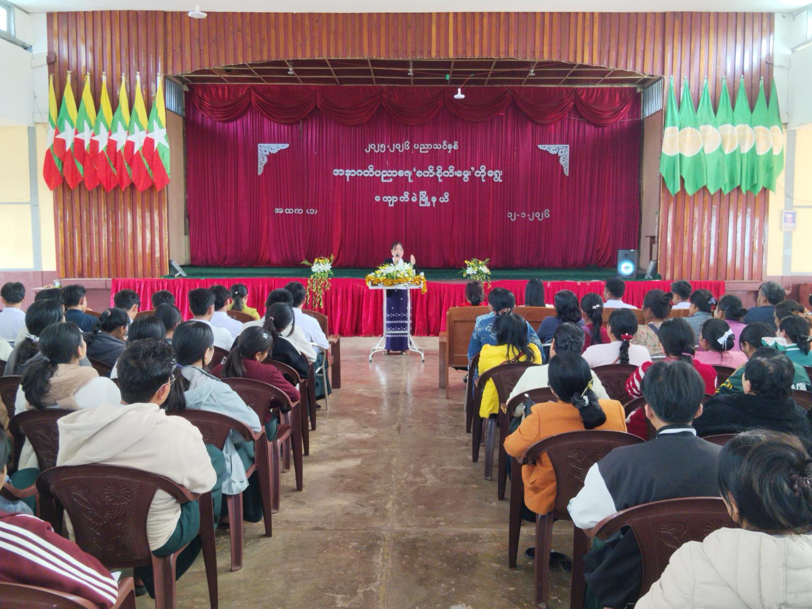 ရှမ်းပြည်နယ် (မြောက်ပိုင်း)၊ ကျောက်မဲမြို့၊ အ.ထ.က (၃) ကျောင်း၌ ဖွင့်လှစ်ထားသည့် အခြေခံပညာနှင့် စက်မှု၊ စိုက်ပျိုး၊ မွေးမြူရေး အထက်တန်းကျောင်းသို့ Grade-9 အောင်မြင်ပြီးသူ ကျောင်းသား၊ ကျောင်းသူများ လျှောက်ထား တက်ရောက်နိုင်ကြောင်း ပြည်သူများ ကျယ်ကျယ်ပြန့်ပြန့်သိစေရန်ရည်ရွယ်၍ တာဝန်ရှိသူများသည် ယမန်နေ့ နေ့လယ် ၂ နာရီ အချိန်က အ.ထ.က (၁) သီရိရတနာခန်းမတွင် အသိပညာဟောပြောပွဲ ဆောင်ရွက်ခဲ့ကြောင်း သိရသည်။