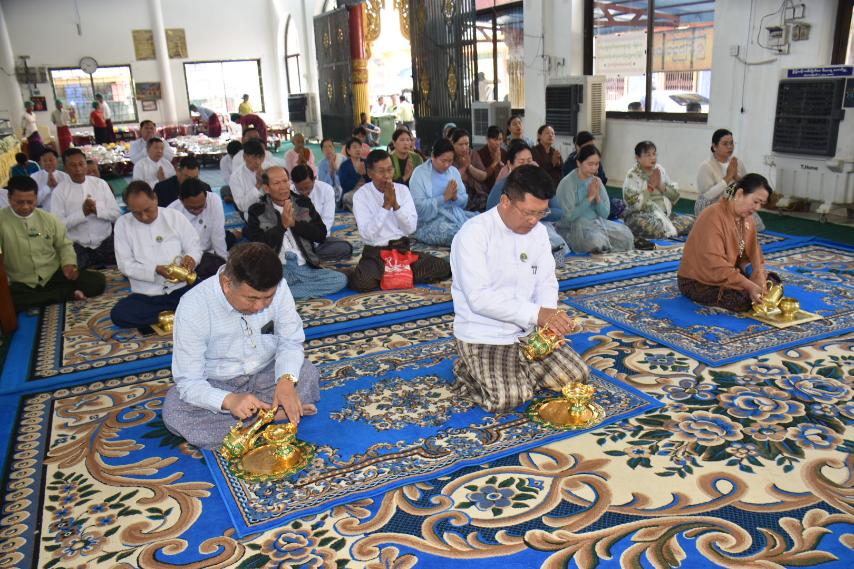 ဆက်လက်၍ ဘဒ္ဒန္တဉာဏိန္ဒ(အဂ္ဂမဟာဂန္တဝါစကပဏ္ဏိတ၊ ဓမ္မာစရိယ+ပါဠိပါရဂူ) တိုက်ကြီးကျောင်းပရိယတ္တိစာသင်တိုက် ဦးစီးပဓာနနာယက ဆရာတော်ထံမှ တိုင်းဒေသကြီးဝန်ကြီးချုပ်နှင့် ဧည့်ပရိသတ်များက အနုမောဒနာတရားများနာကြားကာ လှူဒါန်းမှုအစုစုတို့အတွက် ရေစက်သွန်းချအမျှပေးဝေခဲ့ပြီး ကြွရောက်တော်မူလာကြကုန်သော ဆရာတော်သံဃာတော်အရှင်မြတ်များနှင့် ဧည်ပရိသတ်အပေါင်းတို့က “ဝိနယောနာမ ဗုဒ္ဓသာသနဿ အာယု” ဟူသော ဗုဒ္ဓပါဝစန စကားတော်ကို (၃) ကြိမ်ရွတ်ဆိုတော်မူကြပြီး ဖွင့်ပွဲအခမ်းအနားကို အောင်မြင်စွာရုပ်သိမ်းခဲ့သည်။ ယင်းနောက် (၃၉)ကြိမ်မြောက်ပုသိမ်ခရိုင်လုံးဆိုင်ရာ ရွှေကျင်နိကာယဝိနယဓမ္မစာဖြေစာပြန်ပွဲတော်သို့ ကြွရောက်တော်မူလာကြသည့် ဆရာတော် သံဃာတော်အရှင်သူမြတ်များအား တိုင်းဒေသကြီးဝန်ကြီးချုပ်နှင့် ဇနီး၊ အစိုးရအဖွဲ့ဝင် ဝန်ကြီးများနှင့် ဇနီးများက နေ့ဆွမ်းများ ဆပ်ကပ်လှူဒါန်းခဲ့သည်။