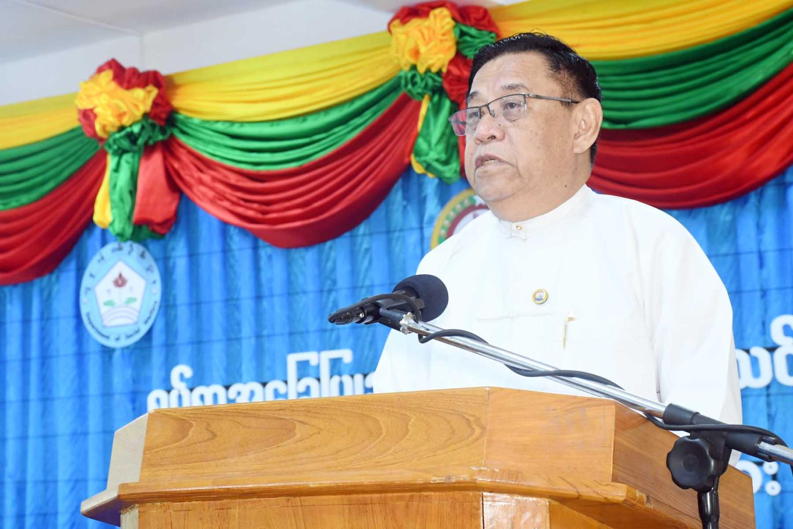 အခမ်းအနားတွင် တိုင်းဒေသကြီးဝန်ကြီးချုပ် ဦးမြတ်ကိုက တိုင်းဒေသကြီးအတွင်း အကြောင်းအမျိုးမျိုးကြောင့် ပညာရေးဆုံးခန်းတိုင်အောင် မသင်ကြားခဲ့ရသော ကျောင်းပြင်ပရောက်ကလေးများ၊ စာမသင်ခဲ့ရသူများ၊ အရွယ် လွန်သူများ၊ အသက်အရွယ်ဖြင့်အတန်းနှင့် မညီမျှသော ကလေးများကို တိုင်းဒေသကြီးအစိုးရအဖွဲ့က ကျောင်းပြင်ပပညာရေးအစီအစဉ်ဖြင့် သင်ကြားဆောင်ရွက်ပေးလျက်ရှိကြောင်း၊ ကျောင်းပြင်ပပညာရေးကျောင်းသား/ကျောင်းသူများ ရသင့်ရထိုက်သောအခွင့်အရေးများ ရရှိအောင် ဆောင်ရွက်ပေးလျက်ရှိကြောင်း၊ ကျောင်းသား/ ကျောင်းသူများအား ကျောင်းစာအပြင် စိတ်ဓာတ်ခွန်အားများရရှိအောင် တိုင်းရင်းသားရေးရာ စင်တာရုံးတွင် အဆင့်မြင့်စက်ချုပ်သင်တန်းအားဖွင့်လှစ်ပေးခြင်းဖြစ်ကြောင်း၊ ကျောင်းနေပြင်ပကျောင်းသား/ ကျောင်းသူများအတွက် သင်တန်းများ ဆက်လက်ဖွင့်လှစ်သင်ကြားပို့ချပေးသွားမည်ဖြစ်ကြောင်း၊ ကျောင်းသား/ ကျောင်းသူများအတွက် လိုအပ်သည့် လူ့စွမ်းအားအရင်းအမြစ်များဖြစ်သော အလတ်စားနှင့်အသေးစားစက်မှုလက်မှုလုပ်ငန်းသင်တန်းများကို ဖွင့်လှစ်ပေးသွားမည်ဖြစ်ကြောင်း၊ ယခုအဆင့်မြင့်စက်ချုပ်သင်တန်းကို ဖွင့်လှစ်သင်ကြားပေးနိုင်သည့်အတွက် ကျောင်းသား/ ကျောင်းသူများအနေဖြင့် အတိုင်းအတာတစ်ခုအထိတတ်မြောက်သွားသော ကြောင့် တိုင်းဒေသကြီးအစိုးရအဖွဲ့အနေဖြင့် ဝမ်းမြောက်ကြောင်း၊ ထို့အပြင် ကျောင်းနေပြင်ပကျောင်းသား/ကျောင်းသူများအတွက် လူမှုစီးပွားဘဝများဖွံ့ဖြိုးတိုးတက်စေရန် ယဉ်ကျေးမှုသင်တန်းများ၊ အသက်မွေးကျောင်းသင်တန်းများကို ဆက်လက်ဖွင့်လှစ် သင်ကြားပေးသွားမှာဖြစ်ကြောင်း ပြောကြားသည်။
