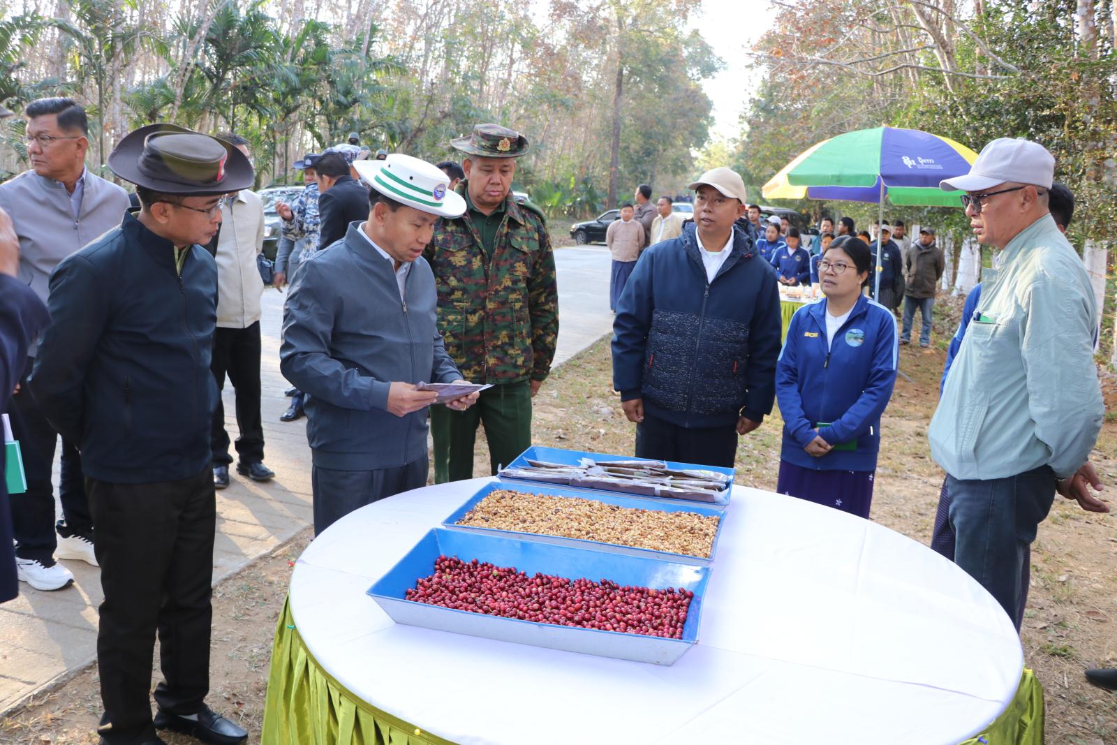 ယင်းနောက် တိုင်းဒေသကြီးဝန်ကြီးချုပ်နှင့် တာဝန်ရှိသူများက ဒေသခံတောင်သူများနှင့်အတူ ကုန်းမြင့်ကော်ဖီသီးနှံ ကိုင်းဖြတ်နေမှုသရုပ်သမှုများအားကြည့်ရှုခဲ့ကြပြီး ဒေသခံတောင်သူများအား ရင်းရင်းနှီးနှီးနှုတ်ဆက်ကာ လိုက်လံရှင်းလင်းပြသမှုများအပေါ် လိုအပ်သည်များကို တာဝန်ရှိသူများနှင့် ဖြည့်ဆည်းပေါင်းစပ်ဆောင်ရွက်ပေးခဲ့သည်။