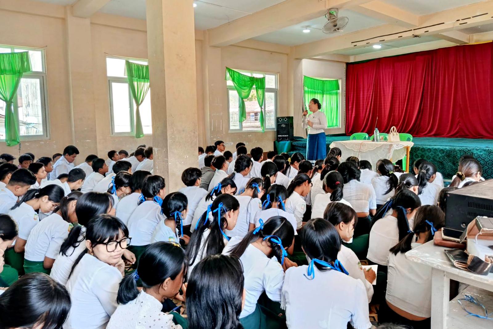 အသိပညာပေး ဟောပြောရာတွင် ပြန်ကြားရေးနှင့်ပြည်သူ့ဆက်ဆံရေးဦးစီးဌာန လက်ထောက်ညွှန်ကြားရေးမှူး ဒေါ်မေဇင်ဦးက ပြည်ထောင်စုနေ့ဖြစ်ပေါ်လာပုံသမိုင်းနှင့် အနာဂတ် မျိုးဆက်သစ် ကျောင်းသား၊ ကျောင်းသူများအနေဖြင့် မြန်မာနိုင်ငံ၏ သမိုင်းဝင်နေ့ထူးနေ့မြတ်များအကြောင်းကို သိရှိနားလည်ပြီး လွတ်လပ်ရေးကို အဓွန့်ရှည်တည်တံ့ရေး ကာကွယ်ထိန်းသိမ်းရန်နှင့် ဇာတိသွေးဇာတိမာန်၊ မျိုးချစ်စိတ်ဓာတ်ရှင်သန်ထက်မြက်ရေး စသည်တို့ကို အသိပညာပေးပြောကြားခဲ့သည်။
