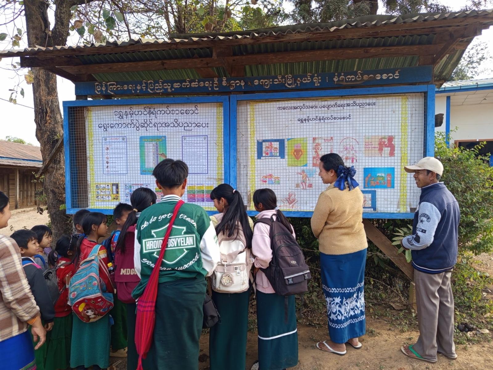အဆိုပါအသိပညာပေးနံရံကပ်စာစောင်တွင် ရွေးကောက်ပွဲဆိုင်ရာအသိပညာပေးနံရံကပ်စာစောင်၊ ကလေးအလုပ်သမားပပျောက်ရေးဆိုင်ရာ အသိပညာပေးနံရံကပ်စာစောင်များကို ခင်းကျင်းပြသခဲ့ရာတွင် ကျောင်းသား/ကျောင်းသူများမှ စိတ်ပါဝင်စားစွ ာကြည့်ရှုလျက်ရှိကြောင်း သိရသည်။