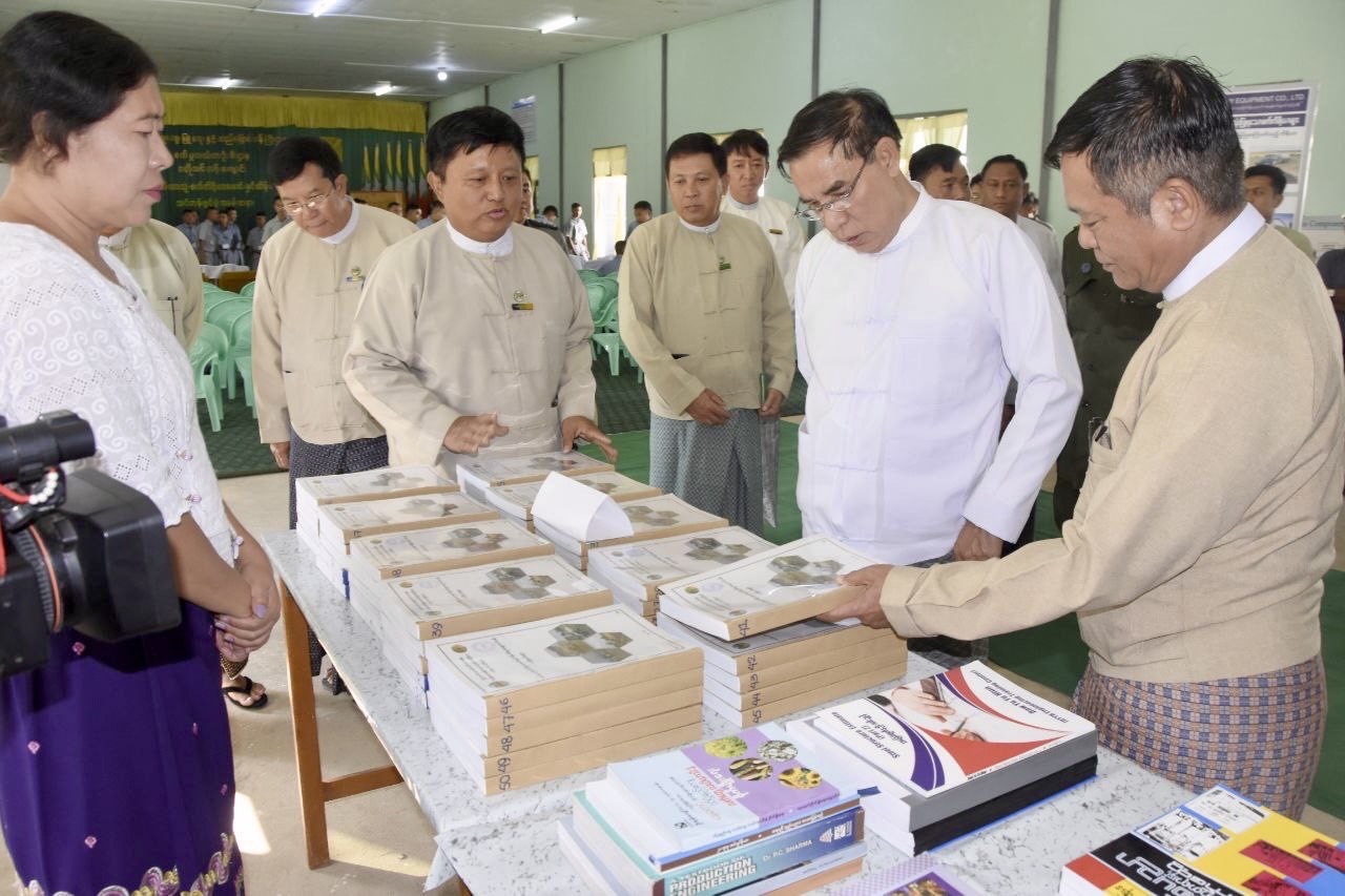 ထို့နောက် ဘုရားကြီးမြို့ စက်မှုလယ်ယာသင်တန်းကျောင်း၊ ကျောင်းအုပ်ကြီး သင်တန်းကျောင်းဆိုင်ရာ အချက်အလက်များအား Power Point ဖြင့် ရှင်းလင်းတင်ပြခဲ့ရာ တိုင်းဒေသကြီး ဝန်ကြီးချုပ်မှ လိုအပ်သည်များ လမ်းညွှန်မှာကြားခဲ့ပြီး သင်တန်းသားများအား ရင်းရင်းနှီးနှီး နှုတ်ဆက်အားပေးစကားပြောကြားခဲ့ကာ သင်တန်း၌စာတွေ့သင်ကြားမည့် ဘာသာရပ်ဆိုင်ရာစာအုပ်များ၊ လယ်ယာသုံးစက်ကိရိယာ အသိပညာပေးစာဆောင်များအား လှည့်လည်ကြည့်ရှုခဲ့သည်။