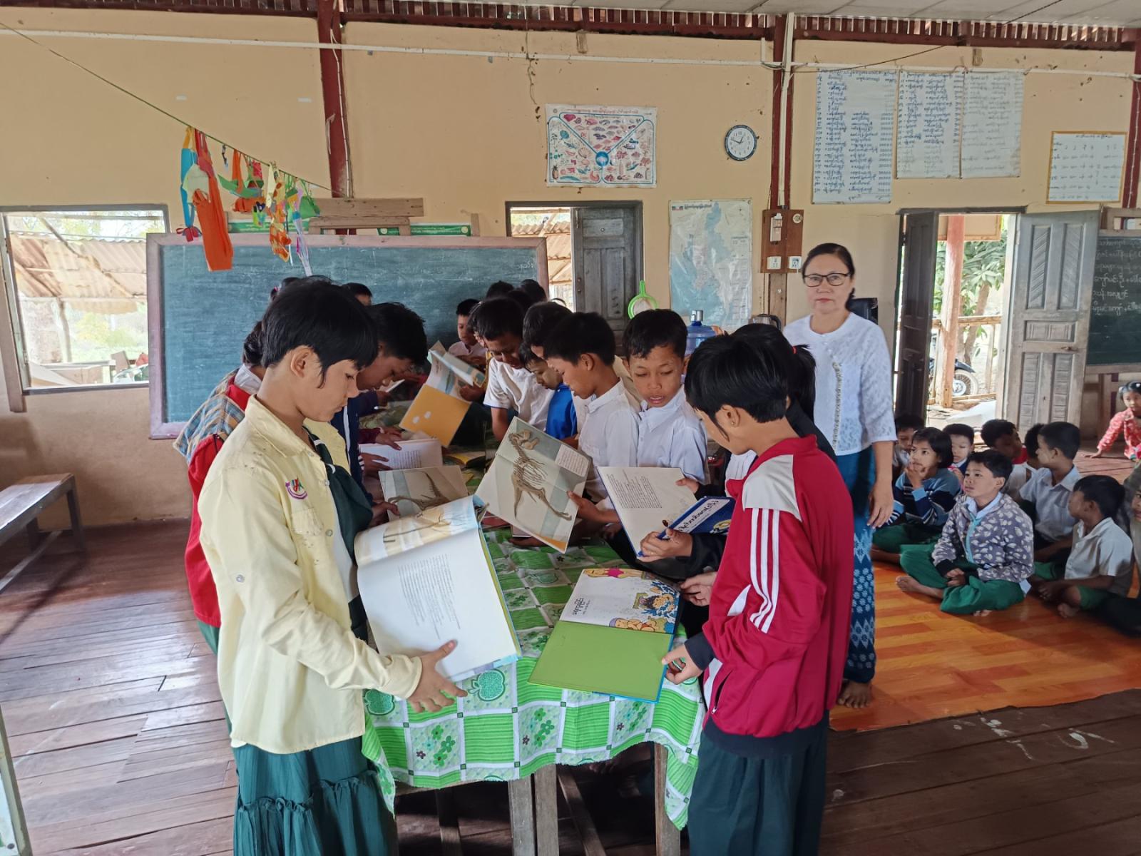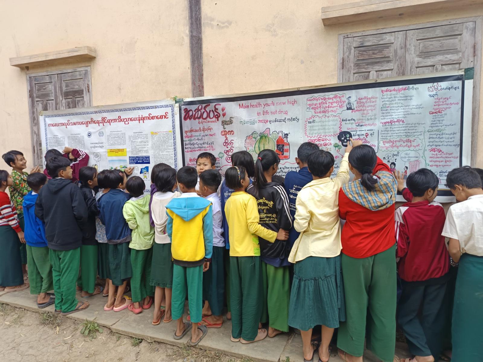 ထို့နောက် ကျောင်းသား၊ ကျောင်းသူများအား ပြန်ကြားရေးနှင့်ပြည်သူ့ဆက်ဆံရေးဦးစီးဌာန ဝန်ထမ်းများမှ ရုပ်ပုံပါစာအုပ်ဖြင့် ပုံပြင်ပြောခြင်း၊ အသိပညာဗဟုသုတရရှိစေမည့် စာအုပ်စာစောင်များ ပြသခြင်း၊ ဖတ်ရှုစေခြင်းများ ဆောင်ရွက်ခဲ့ပြီး မူးယစ်ဆေးဝါးအန္တရာယ် တားဆီးကာကွယ်ရေး အသိပညာပေး နံရံကပ်စာစောင်နှင့် ကလေးအလုပ်သမားပပျောက်ရေး အသိပညာပေး နံရံကပ်စာစောင်များ ပြသခြင်းတို့ဆောင်ရွက်ခဲ့ရာ ကျောင်းသား၊ ကျောင်းသူများမှ စိတ်ပါဝင်စားစွာ လေ့လာကြည့်ရှုမှတ်သားခဲ့ကြောင်း သိရသည်။