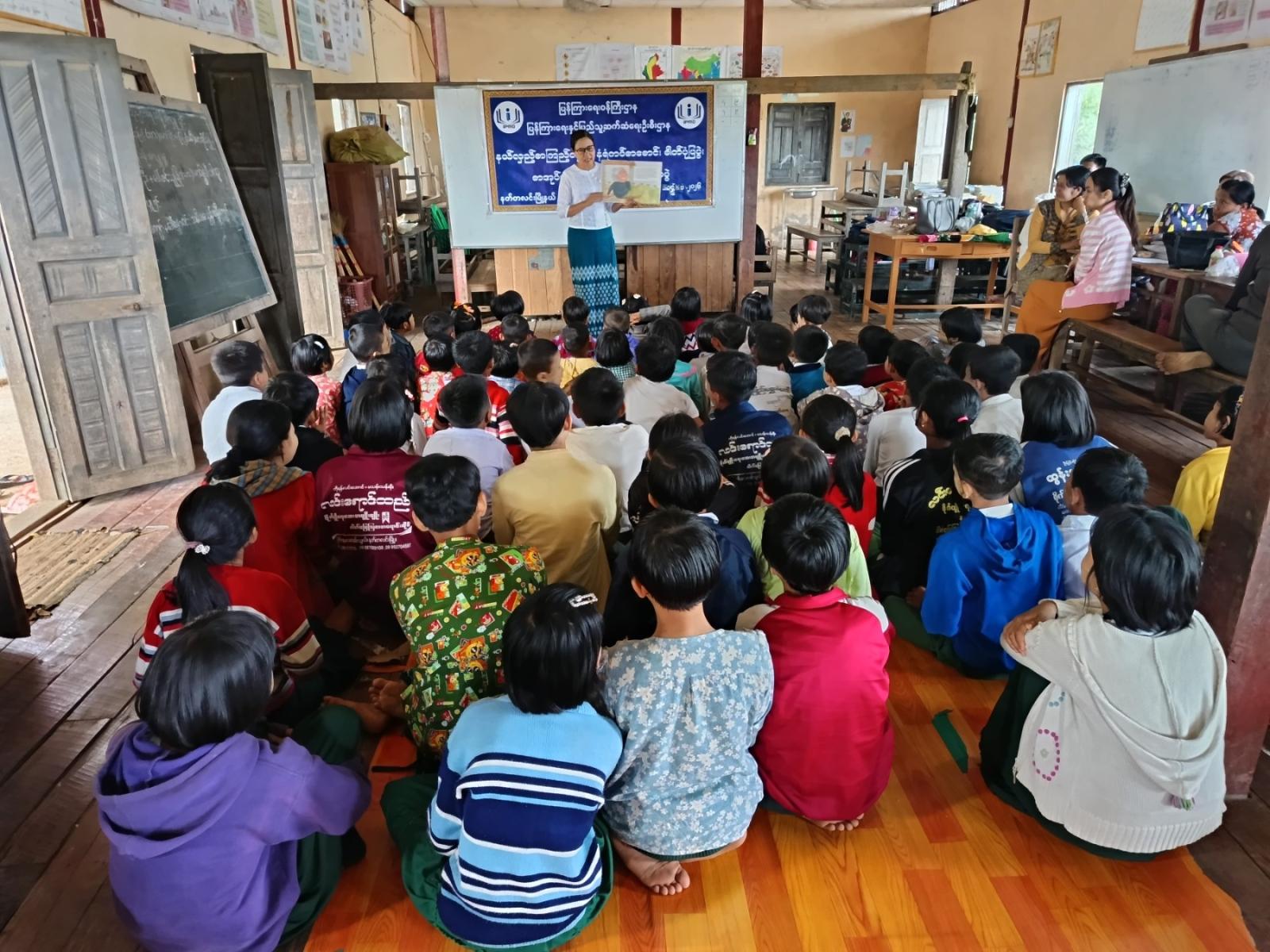 ဦးစွာ ပြန်ကြားရေးနှင့်ပြည်သူ့ဆက်ဆံရေးဦးစီးဌာန မြို့နယ်ဦးစီးမှူး ဒေါ်ခင်သူဇာဝင်းက ကျောင်းသား၊ ကျောင်းသူများအား စာဖတ်ခြင်းကြောင့်ရရှိလာမည့် အကျိုးကျေးဇူးများ၊ မူးယစ်ဆေးဝါးအန္တရာယ် တားဆီးကာကွယ်ရေး၊ လူကုန်ကူးမှုအန္တရာယ်အကြောင်း အသိပညာပေး ဟောပြောသည်။