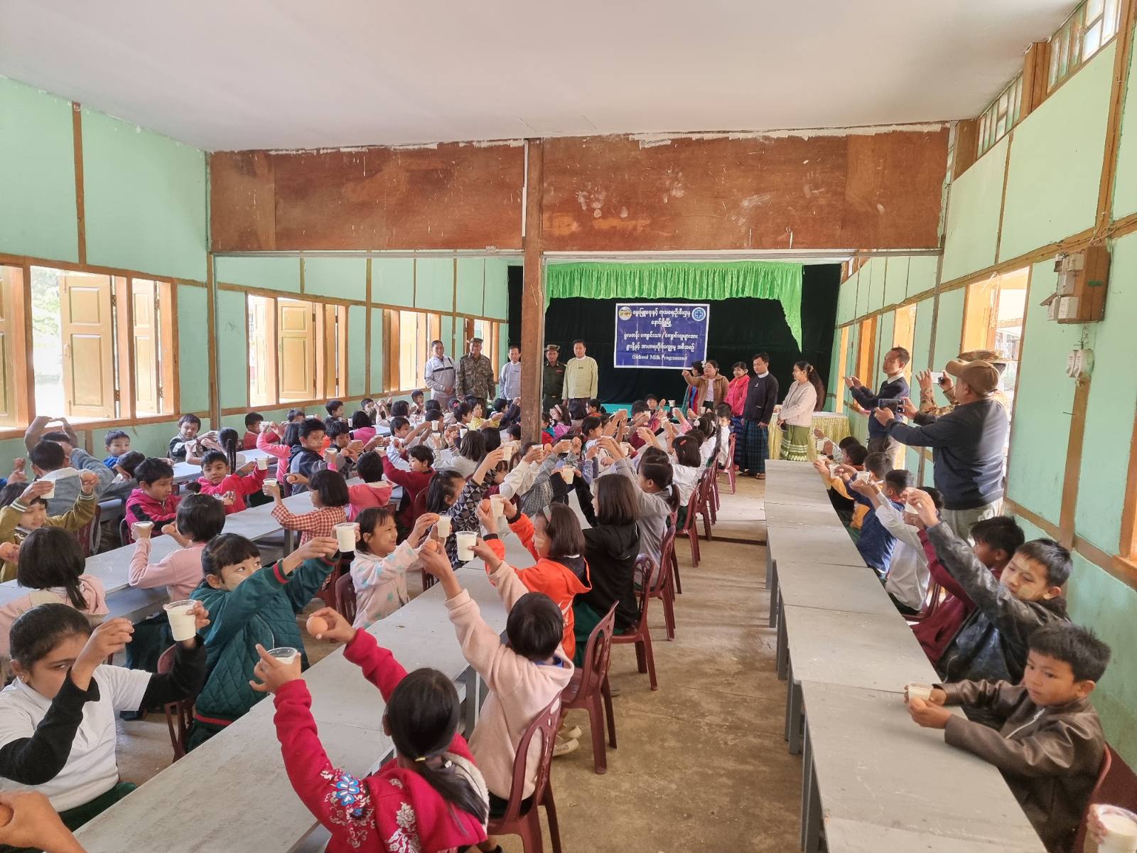 ရှမ်းပြည်နယ်(မြောက်ပိုင်း)၊ နောင်ချိုမြို့နယ် မွေးမြူရေးနှင့်ကုသရေးဦးစီးဌာန၏ School Milk Programme အစီအစဉ်ဖြင့် မူလတန်းကျောင်းသား/သူများအား နွားနို့နှင့်ကြက်ဥပြုတ်အာဟာရ တိုက်ကျွေးခြင်း အခမ်းအနားကို ယနေ့နံနက် (၉) နာရီအချိန်တွင် နောင်ချိုမြို့နယ်အတွင်းရှိ အခြေခံပညာကျောင်း(၈)ကျောင်း၌ ဆောင်ရွက်ခဲ့ကြောင်း သိရသည်။