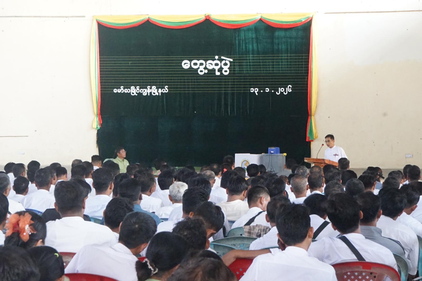 ဧရာဝတီတိုင်းဒေသကြီး၊ လပွတ္တာခရိုင်၊ မော်လမြိုင်ကျွန်းမြို့နယ်တွင် ပါတီစုံဒီမိုကရေစီအထွေထွေရွေးကောက်ပွဲ အောင်မြင်စွာကျင်းပနိုင်ရေး ခရိုင်စီမံခန့်ခွဲရေးနှင့် အုပ်ချုပ်ရေးကော်မတီဥက္ကဋ္ဌနှင့် မြို့နယ်အဆင့်ဌာနဆိုင်ရာများ၊ မြို့နယ်ရွေးကောက်ပွဲကော်မရှင်အဖွဲ့ခွဲများ၊ အုပ်ချုပ်ရေးမှူးများ၊ ရပ်/ကျေးကော်မရှင်ဥက္ကဋ္ဌနှင့် အတွင်းရေးမှူးများ၊ မဲရုံမှူးများနှင့် တွေ့ဆုံပွဲအခမ်းအနားကို အမှတ်(၄)ရပ်ကွက်၊ အောင်ဇေယျလမ်းရှိ အားကစာခန်းမအသစ်၌ ယမန်နေ့မွန်းလွဲပိုင်းက ပြုလုပ်ခဲ့သည်။