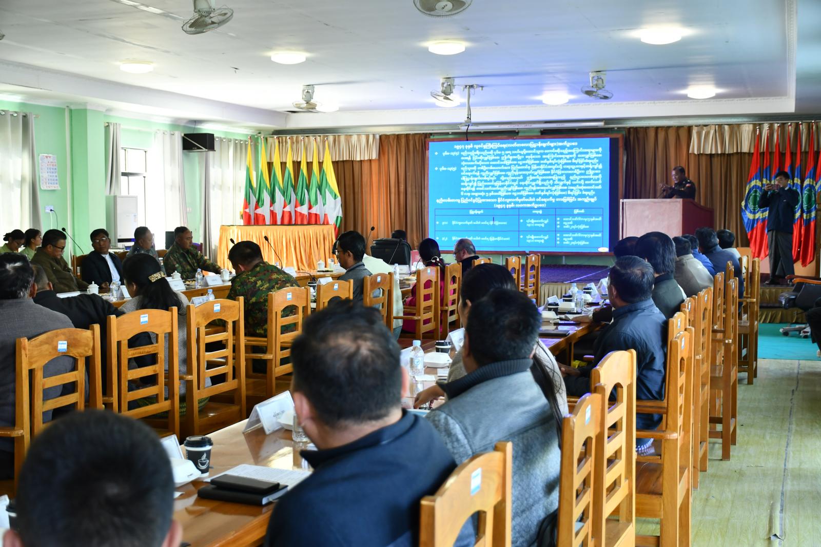 ပထမဦးစွာ မူဆယ်ခရိုင် စီမံခန့်ခွဲရေးနှင့်အုပ်ချုပ်ရေးကော်မတီဥက္ကဋ္ဌ၊ ခရိုင်အုပ်ချုပ်ရေးမှူး ဦးစန်းမင်းက အဖွင့်အမှာစကားပြောကြားခဲ့ပြီး မြေယာနှင့်ပတ်သက်သည့် ကိစ္စရပ်များနှင့် တရားမဝင်ကုန်ပစ္စည်းများ တားဆီးဖမ်းဆီးဆောင်ရွက်ခဲ့မှုအခြေအနေများအား ဆွေးနွေးခဲ့သည်၊၊