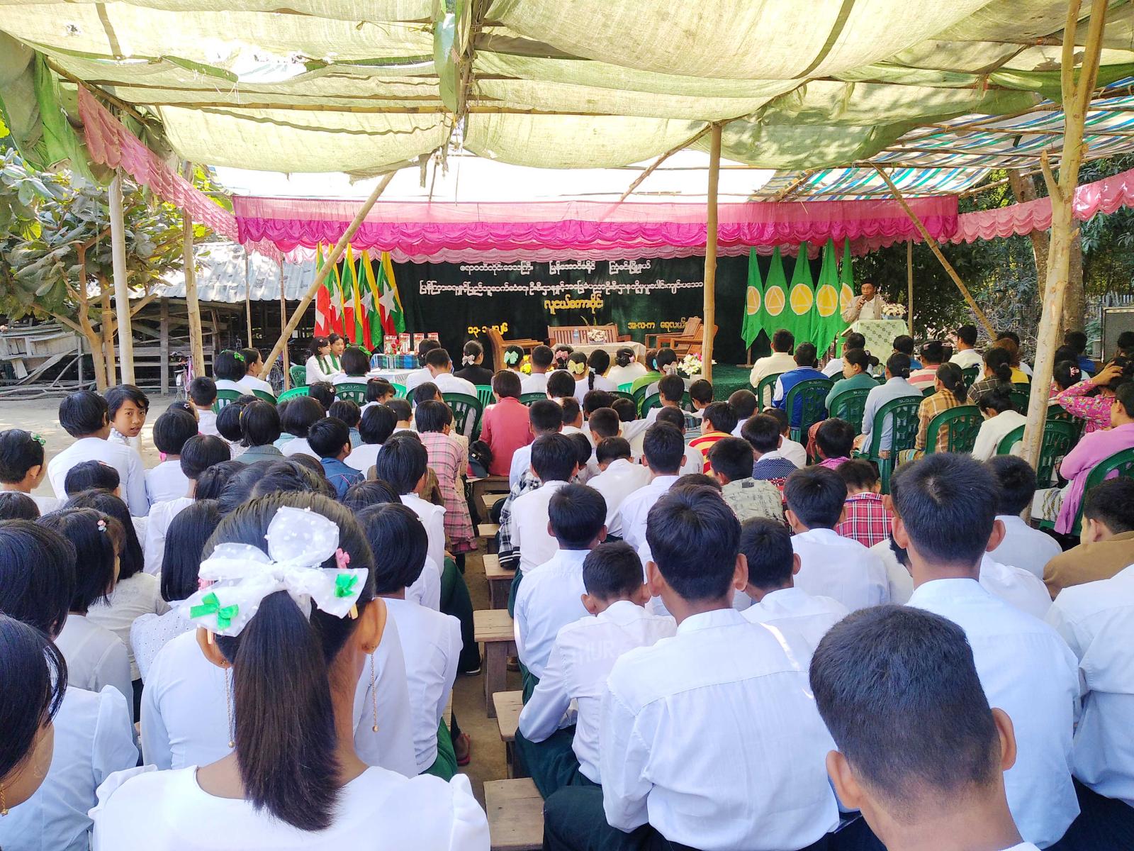 ထို့နောက် မြို့နယ်ပြန်ကြားရေးနှင့်ပြည်သူ့ဆက်ဆံရေးဦးစီးဌာနက ပြသထားသော သုတ၊ ရသ စာအုပ်စာစောင်ပြပွဲနှင့် မီးခိုးမြူငွေ့အန္တရာယ်ဝိုင်းဝန်းစုပေါင်း ဒို့ကာကွယ် နံရံကပ်စာစောင်၊ မူးယစ်ဆေးဝါးအန္တရာယ်အကြောင်းပါဝင်သော အသိပညာပေးနံရံကပ်စာစောင်များကို ပြသပေးခဲ့ရာ ကျောင်းသား၊ ကျောင်းသူများက စိတ်ပါဝင်စားစွာ လေ့လာကြည့်ရှုခဲ့ကြကြောင်း သိရသည်။