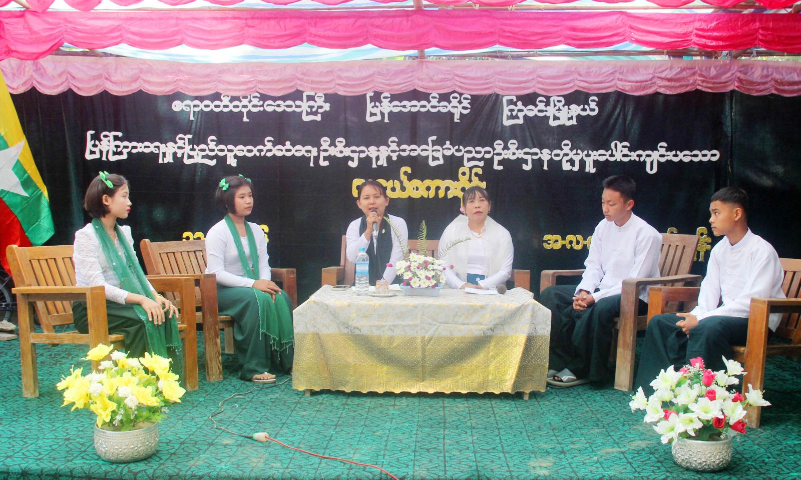 ထို့နောက် လူငယ်စကားဝိုင်းကိုကျင်းပခဲ့ရာ မြို့နယ်ဦးစီးမှူး ဒေါ်ခင်မိုးမြင့်က စေ့စပ်ညှိနှိုင်းသူအဖြစ် ဆောင်ရွက်ပြီး၊ Grade-9 ကျောင်းသား မောင်မြင့်မြတ်ကျော်က “လူငယ်နှင့်စာပေဝါသနာ”၊ Grade-6 ကျောင်းသူ မအိမ့်နဒီလင်းက “လူငယ်နှင့်အသိတရား”၊ Grade-7 ကျောင်းသား မောင်ကောင်းထက်ဇင်က “လူငယ်နှင့်အချိန်၏တန်ဖိုး”၊ Grade-6 ကျောင်းသူ မအိသဥ္ဇာနွယ်က “လူငယ်နှင့်လူမှုဝန်ထမ်းစိတ်” ခေါင်းစဉ်တို့ဖြင့် ၎င်းတို့လေ့လာမှတ်သားထားကြသည့် အကြောင်းအရာများအား ဆွေးနွေးကြကာ ကျောင်းအုပ်ဆရာမကြီး ဒေါ်အေးမြတ်မွန်က ကျောင်းသား၊ ကျောင်းသူများ၏ ဆွေးနွေးမှုများအပေါ် သုံးသပ်ဆွေးနွေးပေးခဲ့သည်။