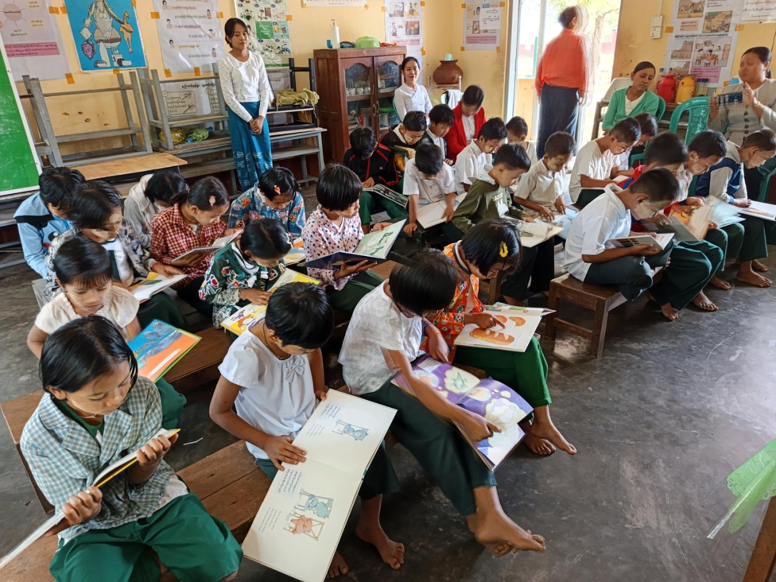 ထို့နောက် ကျောင်းသား၊ ကျောင်းသူများအား ပြန်ကြားရေးနှင့်ပြည်သူ့ဆက်ဆံရေးဦးစီးဌာန ဝန်ထမ်းများမှ ရုပ်ပုံပါစာအုပ်ဖြင့်ပုံပြင်ပြောခြင်း၊ အသိပညာဗဟုသုတရရှိစေမည့် စာအုပ်စာစောင်များပြသခြင်း၊ ဖတ်ရှုစေခြင်းများဆောင်ရွက်ခဲ့ပြီး လူကုန်ကူးမှုတားဆီးကာကွယ်ရေး အသိပညာပေးနံရံကပ်စာစောင်၊ ကလေးအလုပ်သမားပပျောက်ရေး အသိပညာပေးနံရံကပ်စာစောင်များပြသခြင်းတို့ဆောင်ရွက်ခဲ့ရာ ကျောင်းသား၊ကျောင်းသူများမှ စိတ်ပါဝင်စားစွာလေ့လာကြည့်ရှုမှတ်သားခဲ့ကြောင်း သိရသည်။