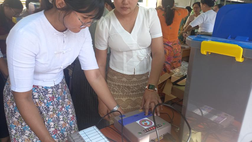 ထိုသို့ MEVM မဲပေးစက်များ Installation လုပ်ငန်းများ ဆောင်ရွက်ရာသို့ မြို့နယ်စီမံခန့်ခွဲရေးနှင့် အုပ်ချုပ်ရေးကော်မတီဥက္ကဋ္ဌ ဦးကျော်သူနှင့် အဖွဲ့ဝင်များ မြို့နယ်ဌာနဆိုင်ရာတာဝန်ရှိသူများက လိုအပ်သည်များ ပေါင်းစပ်ညှိနှိုင်းဆောင်ရွက်ခဲ့ကြသည်။