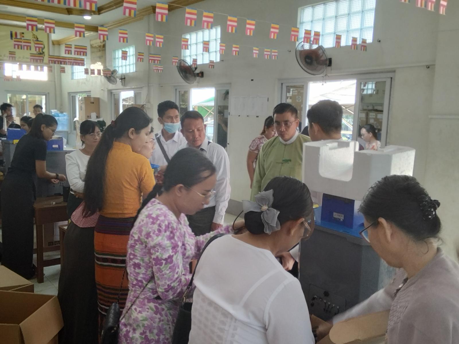 ရန်ကုန်တိုင်းဒေသကြီး၊ ဗိုလ်တထောင်ခရိုင်၊ သာကေတမြို့နယ်၌ ၂၀၂၅ ခုနှစ် ပါတီစုံဒီမိုကရေစီအထွေထွေရွေးကောက်ပွဲ အပိုင်း (၃) ကို ဇန်နဝါရီလ (၂၅) ရက်နေ့တွင် ကျင်းပဆောင်ရွက်သွားမည်ဖြစ်ရာ ရွေးကောက်ပွဲတွင် အသုံးပြုမည့် MEVM မြန်မာအီလက်ထရောနစ်မဲပေးစက်များ Installation ပြုလုပ်ခြင်းကို ယနေ့နံနက် ၈ နာရီက မြို့နယ်ရဲစခန်းဓမ္မာရုံတွင် ဆောင်ရွက်ခဲ့ကြောင်း သိရသည်။