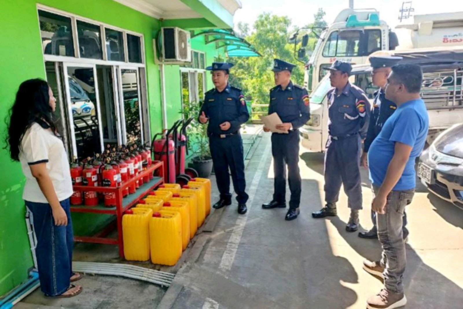 သန်လျင်ခရိုင် သန်လျင်မြို့နယ် မီးသတ်ဦးစီးဌာနမှ မြို့နယ်အတွင်းရှိ စက်သုံးဆီအရောင်းဆိုင်များအား မီးဘေးကြိုတင်ကာကွယ်ရေးနှင့် မီးဘေးလုံခြုံရေးလိုက်လံစစ်ဆေးခြင်းကို ယမန်နေ့ မွန်းလွဲ (၁) နာရီက ဆောင်ရွက်ခဲ့သည်။