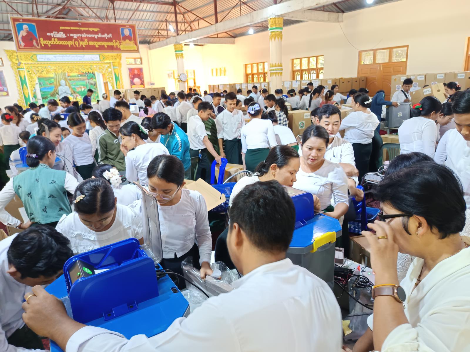 ဧရာဝတီတိုင်းဒေသကြီး၊ မအူပင်ခရိုင်၊ ဓနုဖြူမြို့နယ်တွင် ၂၀၂၅ ခုနှစ် ပါတီစုံဒီမိုကရေစီအထွေထွေရွေးကောက်ပွဲ အပိုင်း(၃)ကို ဇန်နဝါရီလ(၂၅)ရက်နေ့တွင် ကျင်းပဆောင်ရွက်သွားမည်ဖြစ်ရာ ရွေးကောက်ပွဲ၌ ဆန္ဒမဲပေးရာတွင် အသုံးပြုမည့် မြန်မာအီလက်ထရောနစ်မဲပေးစက်(MEVM)များ စစ်ဆေးခြင်းနှင့် INSTALLATION တပ်ဆင်အသုံးပြုခြင်းကို ယနေ့နံနက်(၉)နာရီအချိန်က ရွှေဟင်္သာကျောင်းတိုက် ဗိမာန်တွင် ပြုလုပ်ဆောင်ရွက်ကြောင်းသိရသည်။