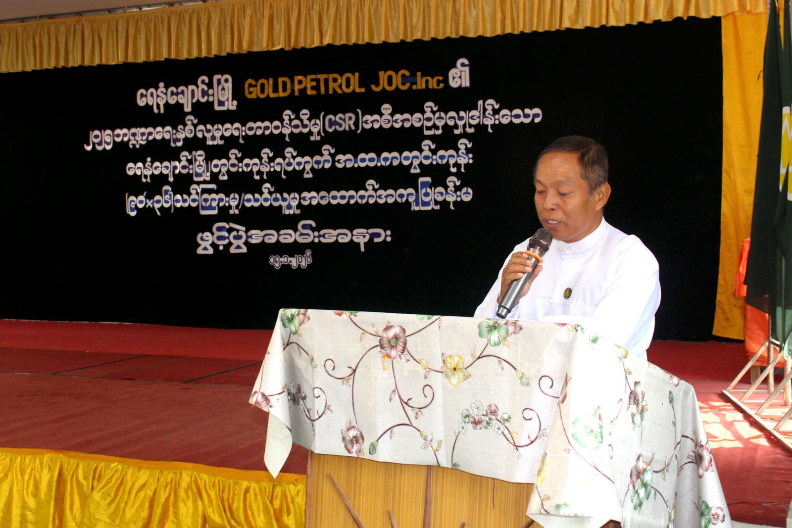 ရှေးဦးစွာ Gold Petrol Joint Operating Company Inc မှ ၂၀၂၅ ဘဏ္ဍာရေးနှစ် လူမှုရေးတာဝန်သိမှု(CSR) အစီအစဉ်ဖြင့် တန်ဖိုးငွေ ၁၁၇၁၄၈၅၀၀ ကျပ်ဖြင့် ဆောက်လုပ်လှူဒါန်းသည့် အလျား ၉၀ ပေ၊ အနံ ၃၆ ပေရှိ သင်ကြားသင်ယူမှုအထောက်အကူပြု ခန်းမသစ်အား မြန်မာ့ရေနံနှင့်သဘာဝ ဓာတ်ငွေ့လုပ်ငန်း အထွေထွေမန်နေဂျာ ဦးလှမြင့်၊ Gold Petrol Joint Operating Company Inc မှ GP Field မန်နေဂျာ Mr. Zhu Sheng Ting ၊ မြို့နယ်စီမံခန့်ခွဲရေးနှင့်အုပ်ချုပ်ရေးကော်မတီဝင် ဦးတင်အောင်ဦး၊ မြို့နယ်ပညာရေးမှူးရုံး တာဝန်ခံဦးသန်းဇော်လင်းနှင့် တာဝန်ရှိသူများက ဖဲကြိုးဖြတ်ဖွင့်လှစ်သည်။