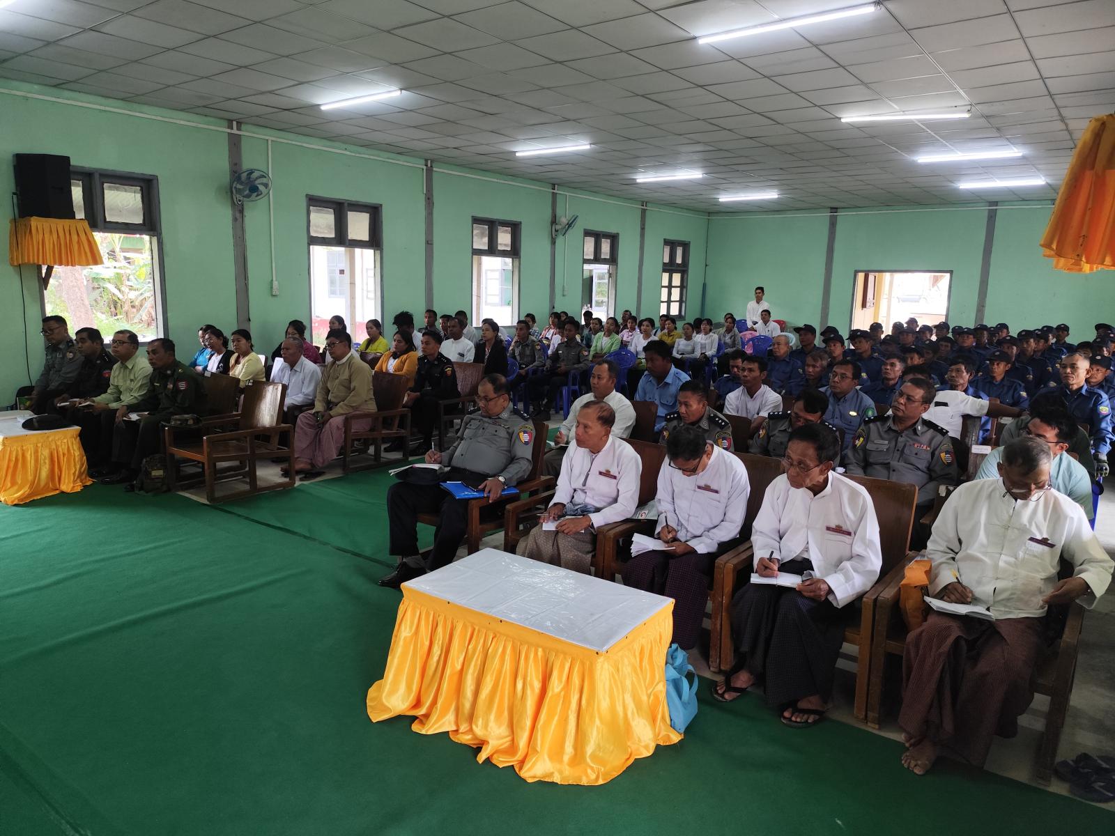 ဦးစွာ ဧရာဝတီတိုင်းဒေသကြီးအစိုးရအဖွဲ့ လုံခြုံရေးနှင့်နယ်စပ်ရေးရာဝန်ကြီး ဗိုလ်မှူးကြီးခန့်မွန်ဆွေက အမှာစကားပြောကြားခဲ့ပြီး မြို့နယ်စီမံခန့်ခွဲရေးနှင့် အုပ်ချုပ်ရေးကော်မတီ ဥက္ကဋ္ဌ ဦးငြိမ်းမောင်မောင်က ရွေးကောက်ပွဲဆိုင်ရာ ပြင်ဆင်ထားရှိမှုကိစ္စရပ်များကို ဆွေးနွေးတင်ပြခဲ့သည်။ ဆက်လက်၍ မြို့နယ်စီမံခန့်ခွဲရေးနှင့် အုပ်ချုပ်ရေးကော်မတီ အတွင်းရေးမှူး ယာယီရဲမှူးသန်းမင်းထက်က ရွေးကောက်ပွဲဆိုင်ရာ လုံခြုံရေးနှင့်ပတ်သက်၍ ဆောင်ရွက်ထားရှိမှုအခြေအနေများကို တင်ပြဆွေးနွေးခဲ့ပြီး ဧရာဝတီတိုင်းဒေသကြီးအစိုးရအဖွဲ့ လုံခြုံရေးနှင့်နယ်စပ်ရေးရာဝန်ကြီး ဗိုလ်မှူးကြီး ခန့်မွန်ဆွေက လိုအပ်သည်များကိုမှာကြားခဲ့သည်။